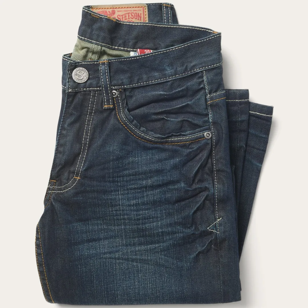 Details include Stetson-branded hardware, custom pieced pocket embroidery, and five pockets for plenty of storage. Cut, sewn, and detailed to exceptionally high standards, there’s authenticity in every inch. Whether you’re suiting up for a day around the ranch, forging through thickets on the trail, or simply heading into work, a good pair of jeans is a fundamental and timeless addition to any man’s wardrobe.