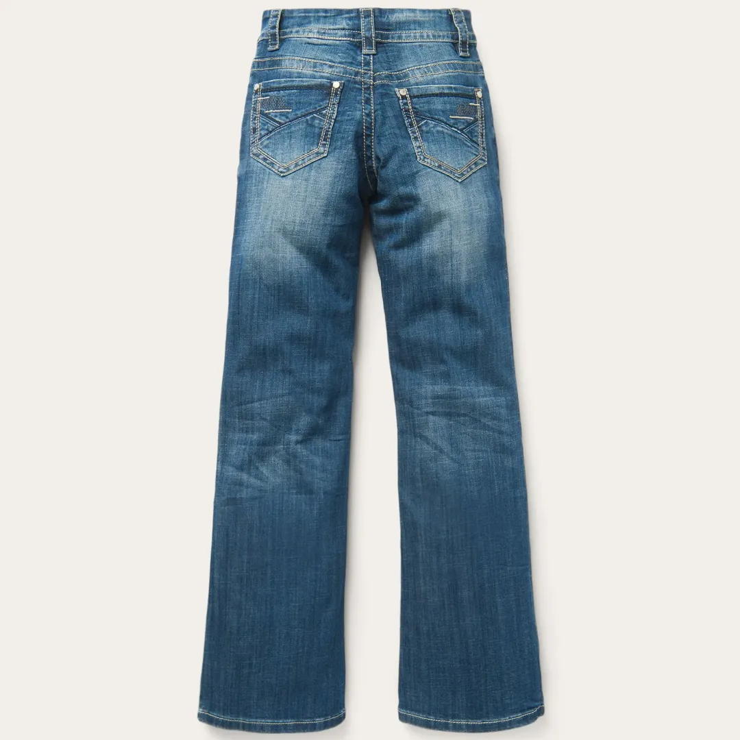 Details include angular-stitched back pockets and a lightly hand-sanded fade for the perfect worn-in feel. The complete look is finished off with custom Stetson-branded hardware. Designed to look great, fit right, and work hard, the careful styling of these Western jeans is made for women with an independent spirit and love of heritage craftsmanship.