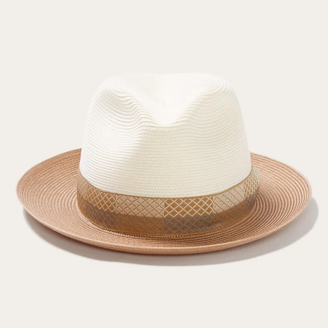 The Andover Milan Fedora is constructed of firm finish, florentine Milan straw and features a cowhide interior sweatband and patterned grosgrain hat band.