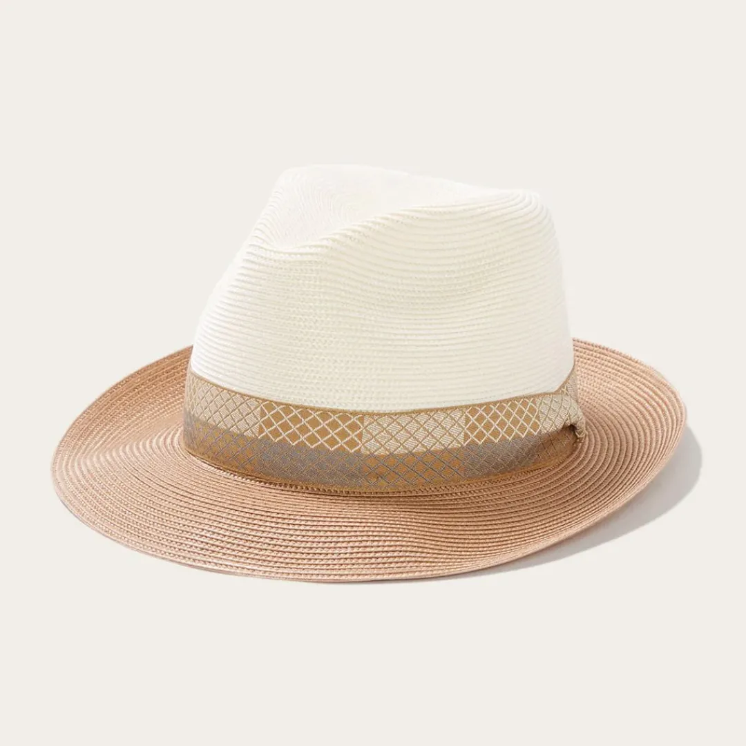 The Andover Milan Fedora is constructed of firm finish, florentine Milan straw and features a cowhide interior sweatband and patterned grosgrain hat band.