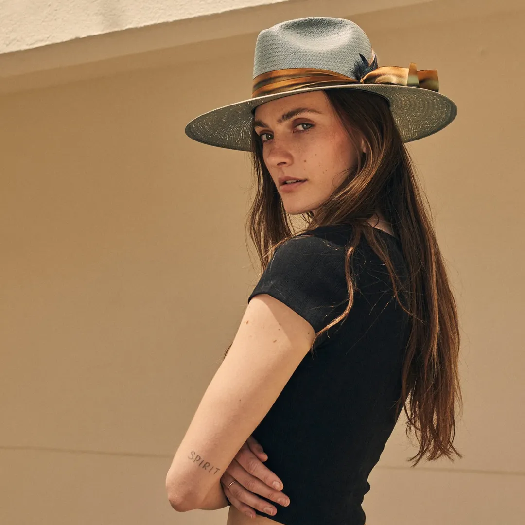 The Caelus is a visually stunning hat, crafted from shantung straw in a distinctive seafoam color, and with a timeless wide-brim silhouette. It gains sophistication from a unique touch: A silk hat band that’s dyed by hand, then tied into an oversized bow. Inside, the Dri-Lex sweatband ensures that you’ll stay cool and dry.