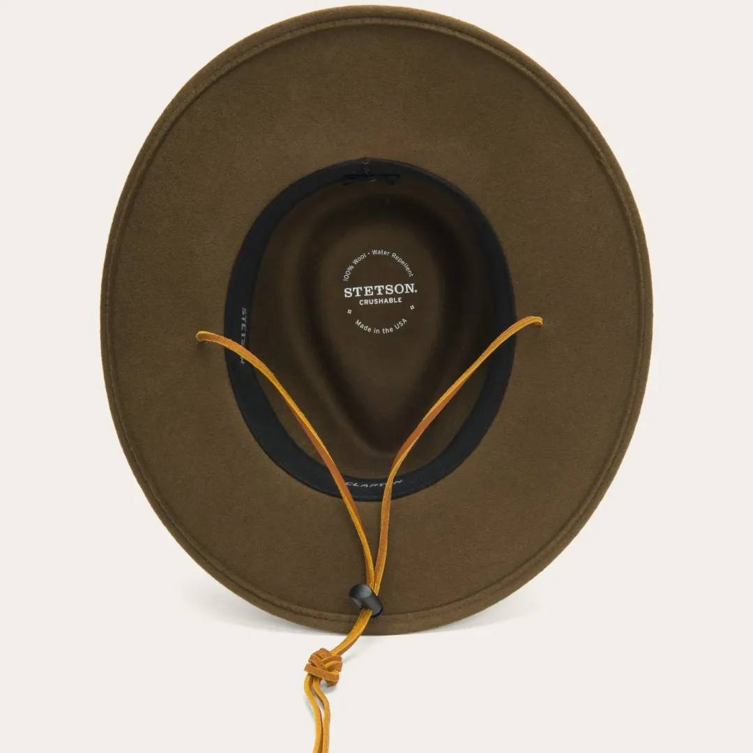 For adventurers of all kinds — the explorers, the road-trippers and anyone who refuses to stay indoors for long. The Clapton is constructed of quality fur felt and features a teardrop crown, leather hat band and chinstrap. It’s crushable for easy storage so it’s always at the ready no matter where your adventure leads.