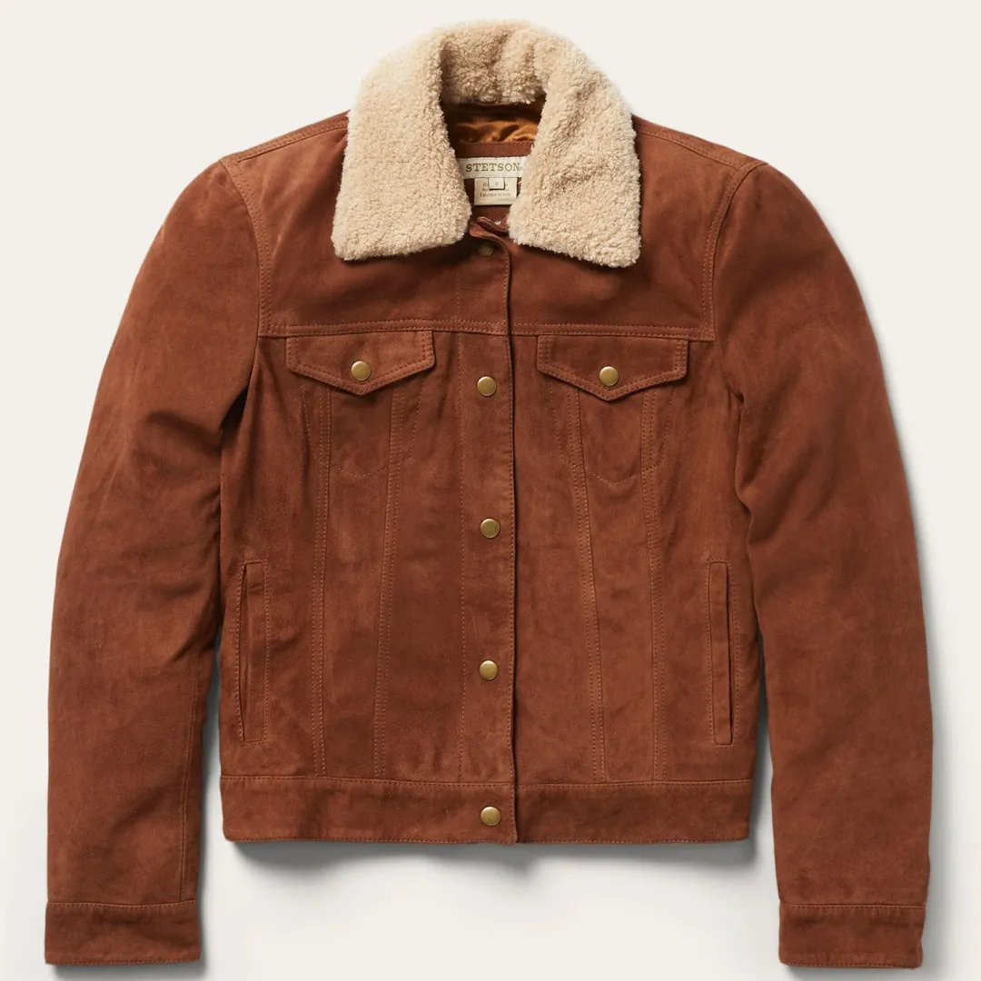 A statement piece, this suede jacket made from high-quality leather is fully lined and features a removable shearling collar, front and back seams, and a healthy amount of pockets. Supple leather and quality craftsmanship will make this a Western classic for years to come.