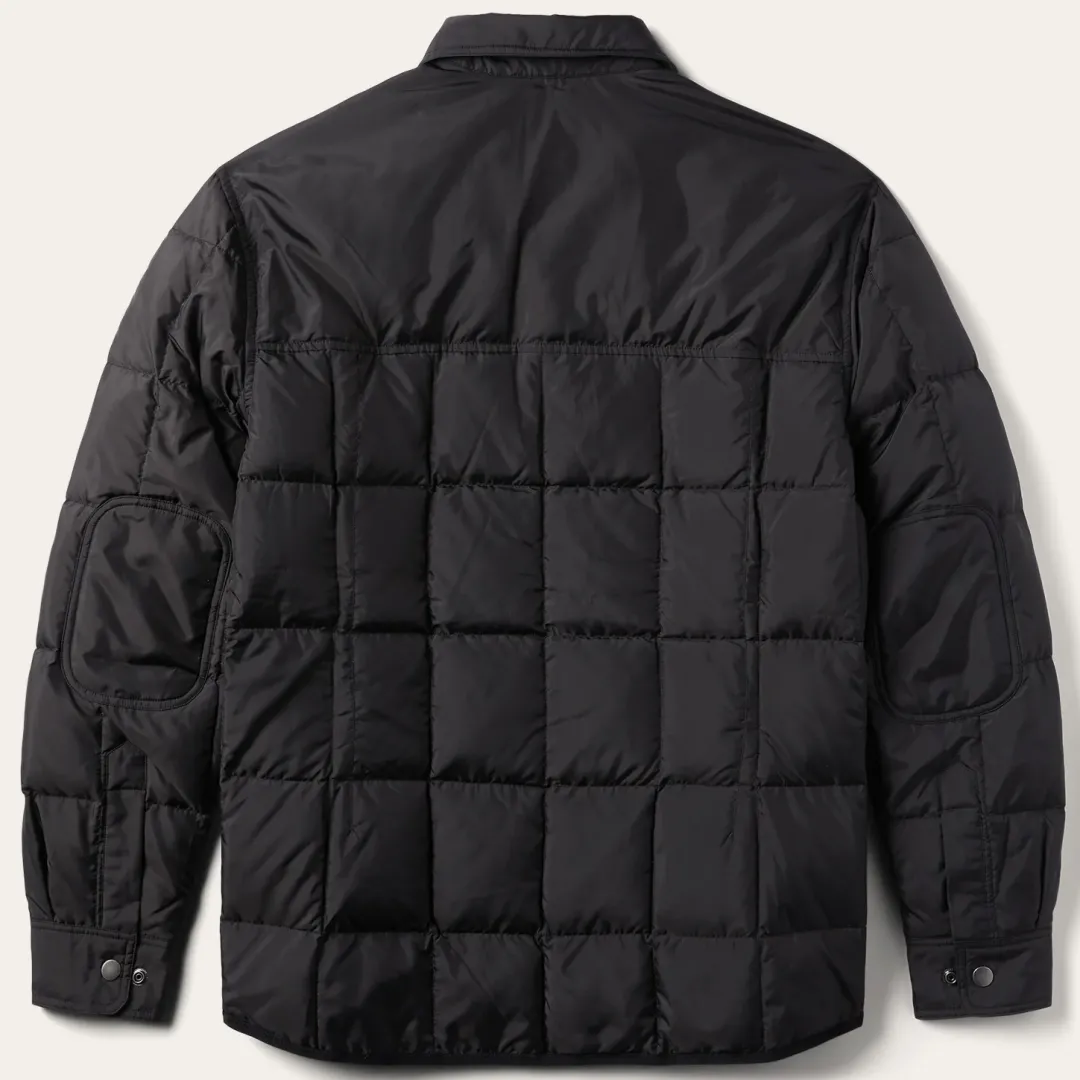 This versatile jacket is lightweight and fully crushable for easy traveling. Filled with down. it has a high warmth to weight ratio so you’re always prepared if the weather goes south. The neutral pure black exterior pairs with anything, while the hunter green interior provides a subtle contrast. Further details include welt pockets, adjustable snap cuffs and a snap front with antique nickel snaps.