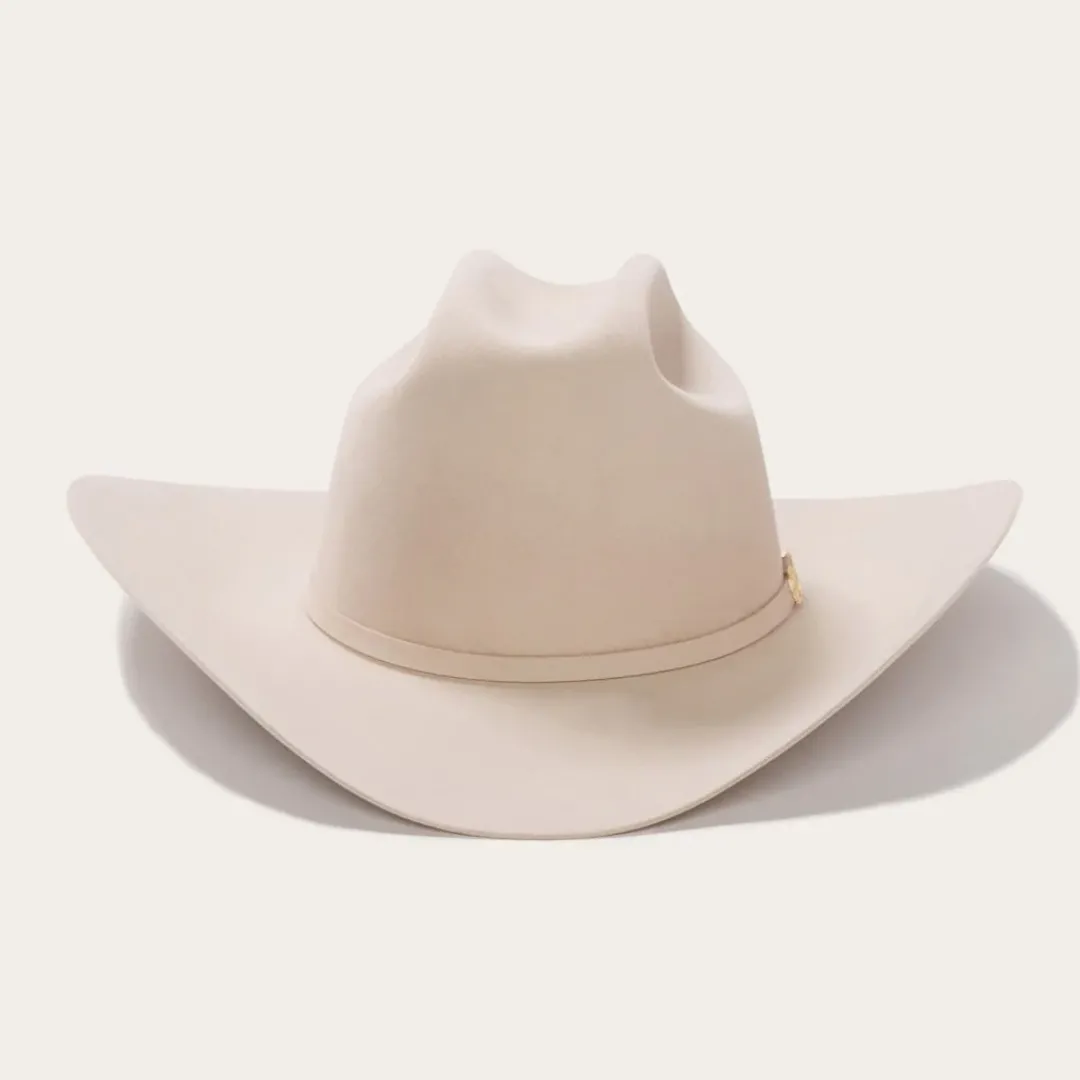 One of the finest hats in our collection, the El Presidente is made from premium 100X fur felt. A shining example of the legendary craftsmanship Stetson is known for, this incredibly high-quality piece features classic cattleman hat styling, with a tall crown and 4” wide brim. Made in the U.S.A., the El Presidente has a soft, satin-lined crown and comfortable 2” leather sweatband — on the outside, a self-felt hatband dyed the same distinctive hue as the body of the hat is set apart by a three-piece buckle set made of solid 10-karat gold. Part of Stetson’s Premier Collection, this hat exudes a quiet confidence and rugged fortitude that sets it apart from the crowd. Comes with heavy duty hat case.