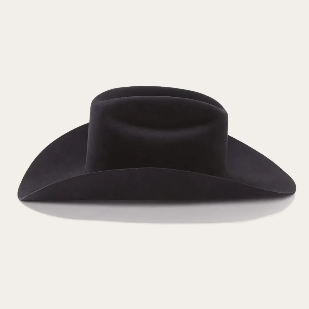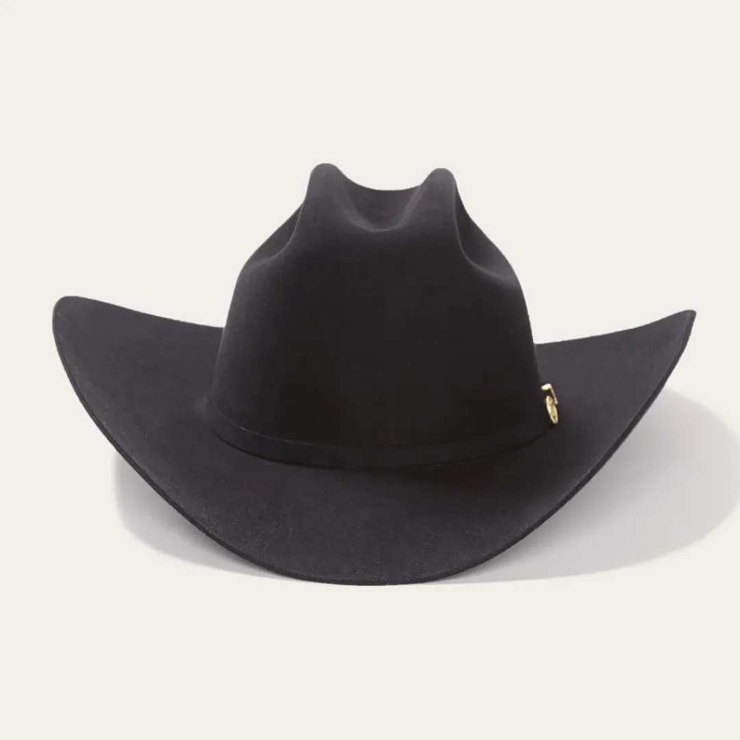 One of the finest hats in our collection, the El Presidente is made from premium 100X fur felt. A shining example of the legendary craftsmanship Stetson is known for, this incredibly high-quality piece features classic cattleman hat styling, with a tall crown and 4” wide brim. Made in the U.S.A., the El Presidente has a soft, satin-lined crown and comfortable 2” leather sweatband — on the outside, a self-felt hatband dyed the same distinctive hue as the body of the hat is set apart by a three-piece buckle set made of solid 10-karat gold. Part of Stetson’s Premier Collection, this hat exudes a quiet confidence and rugged fortitude that sets it apart from the crowd. Comes with heavy duty hat case.