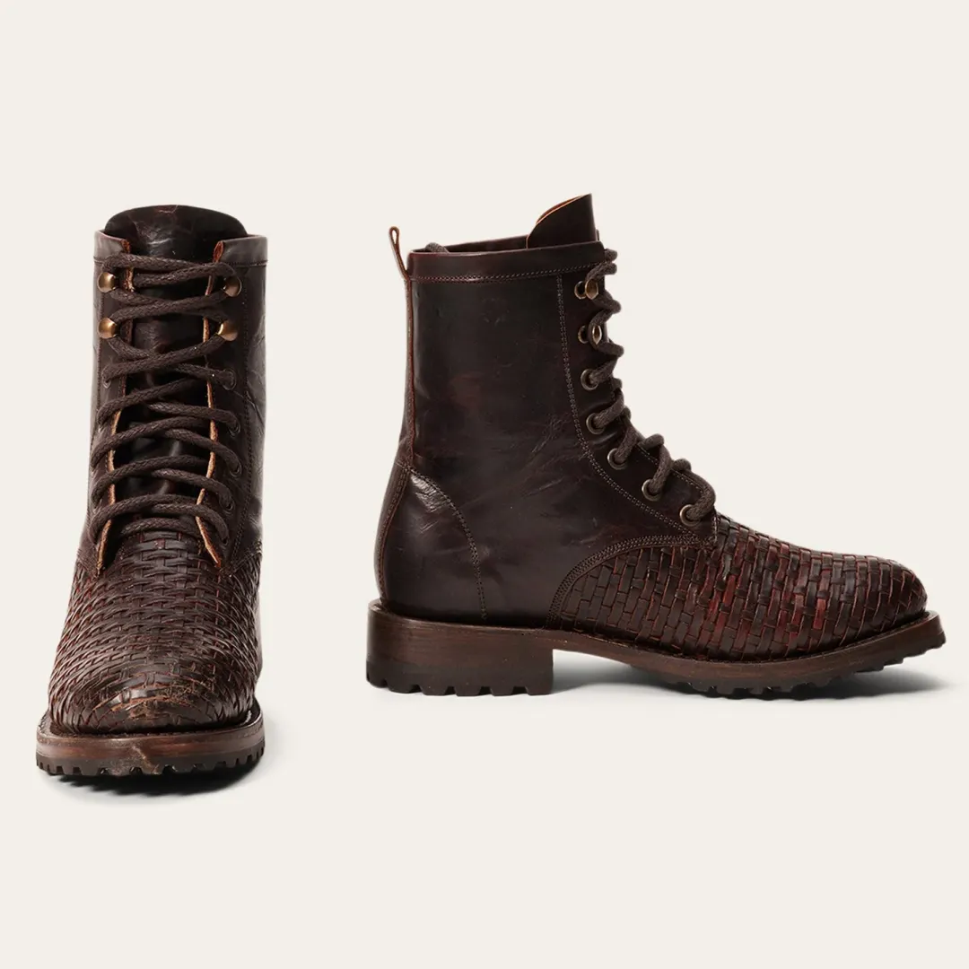 Whether you’re trekking in the woods or kicking up dust on the ranch, these boots fit the bill. Handcrafted by Stetson’s legendary bootmakers from tough leather. Features include: cushioned leather insoles, a lace-up shaft, walking heel and lug soles to provide traction and stability.