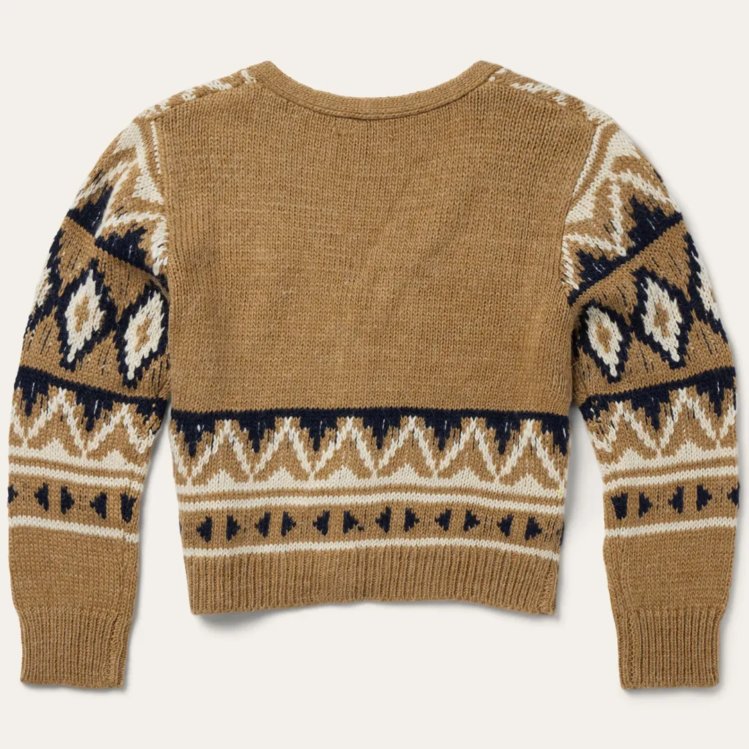 This stunning southwest-inspired cardigan sweater is made from a soft and comfortable acrylic/alpaca blend that has been yarn-dyed for rich, lasting color. It features a gold aztec print design, V-neck and four-button front placket, ribbed cuffs and a waist-length hem for a modern, flattering fit.
