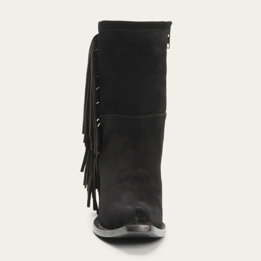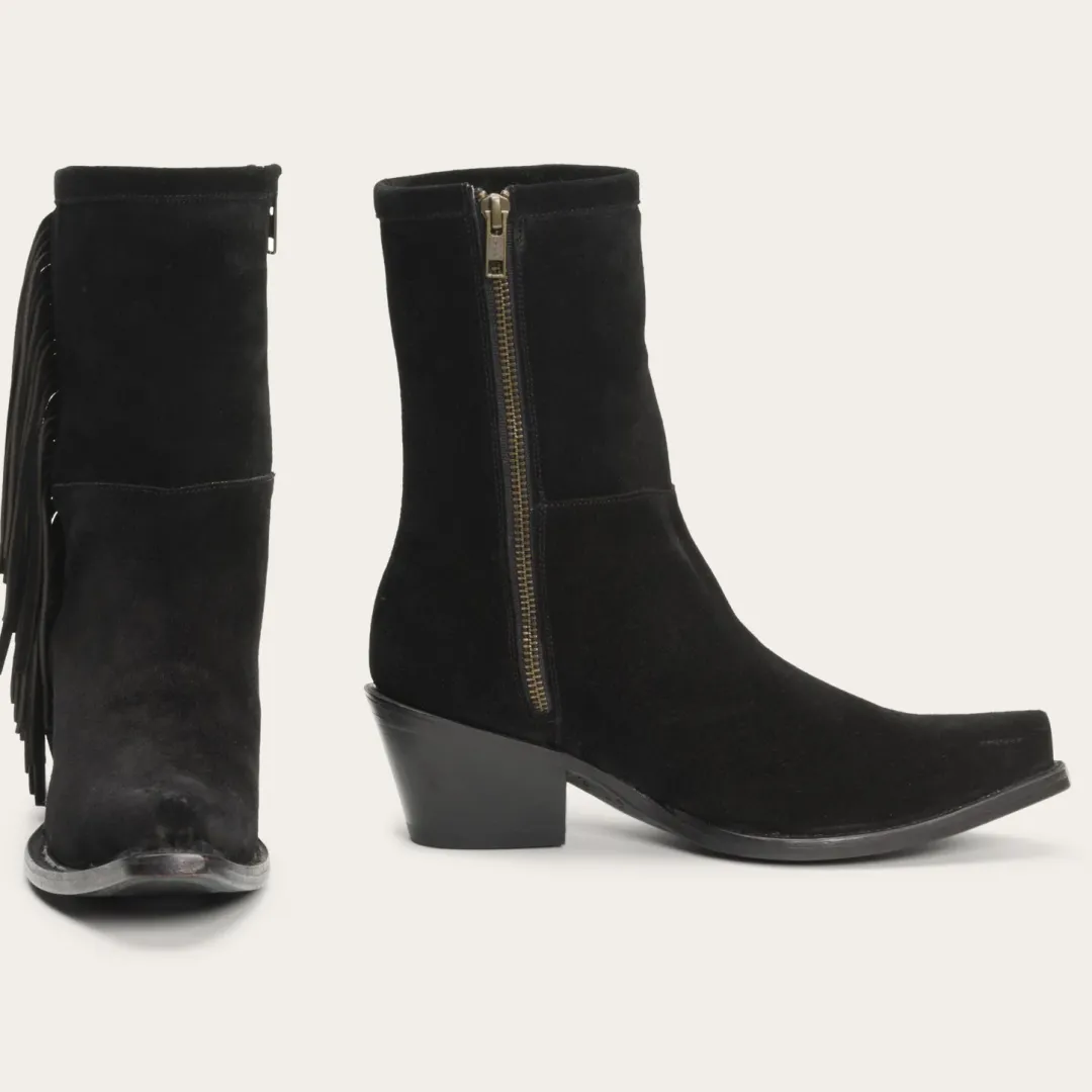 Hit the town with a mix of panache and cowgirl style. Handcrafted by Stetson’s legendary bootmakers from vintage-finished suede. Features include angle fringes, cushioned insoles, premium brass nails and hand-driven lemonwood pegs that enable the boot to withstand the elements by expanding and contracting with any moisture the boot may encounter.