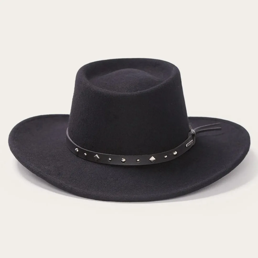 The Black Hawk Outdoor Hat is constructed of crushable wool and features an interior dri-lex sweatband and studded leather hat band. Wool. Made in USA.