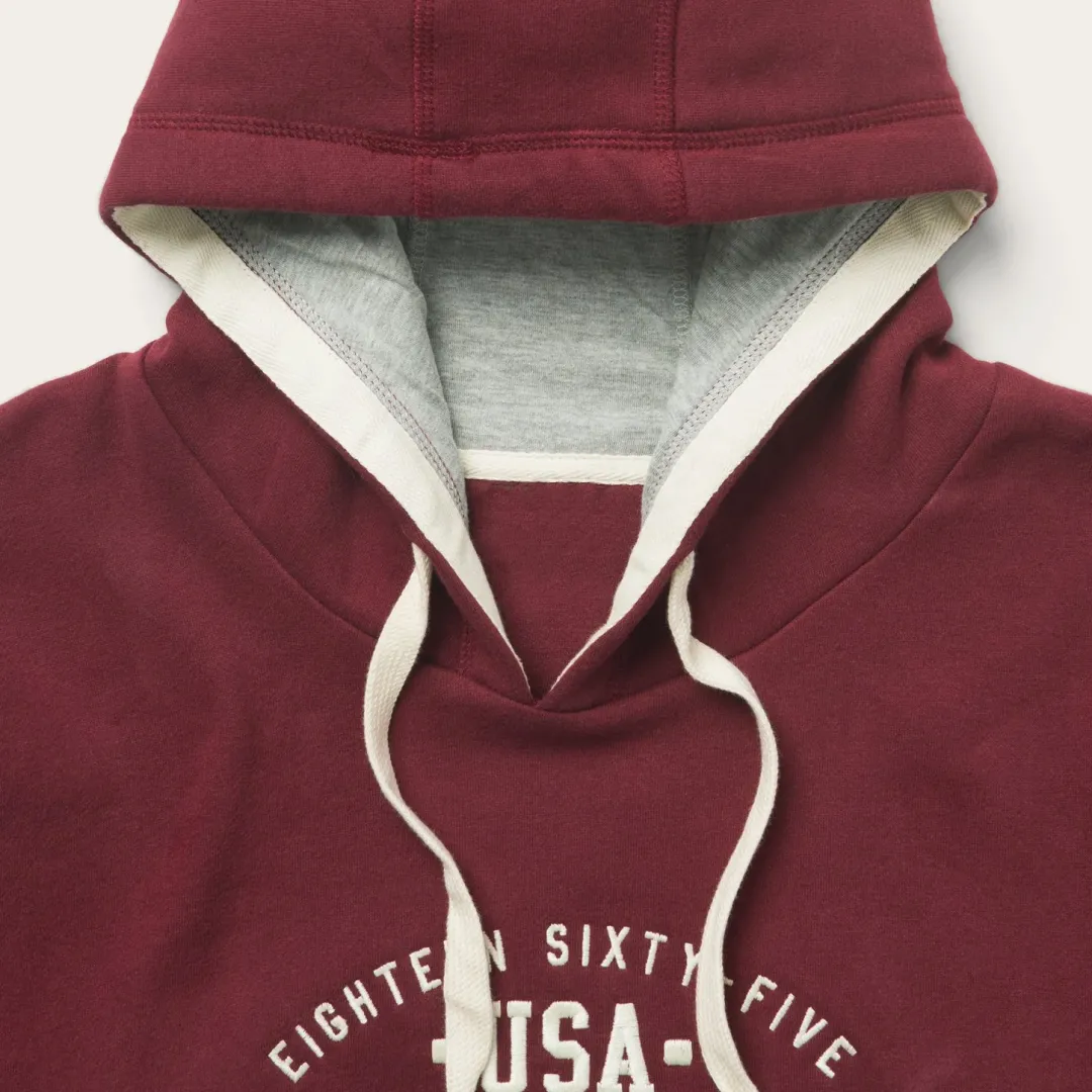 We have a soft spot for a good sweatshirt, and it doesn’t get much better than this. Our ultimate hoodie includes sturdy knit ribbing at the cuffs and hem for durability, a drawcord-adjustable hood and a comfortable kangaroo pocket. Made from a dense-but-breathable cotton blend, this sweatshirt will only get better with time — so go ahead and wear it to work, at your next cookout, camping, or wherever else life takes you. The Stetson name is printed in white on the rich maroon fabric, which features embroidered detailing. Warm, substantial, and comfortable, this is our go-to layer indoors or out — you may never want to wear anything else.