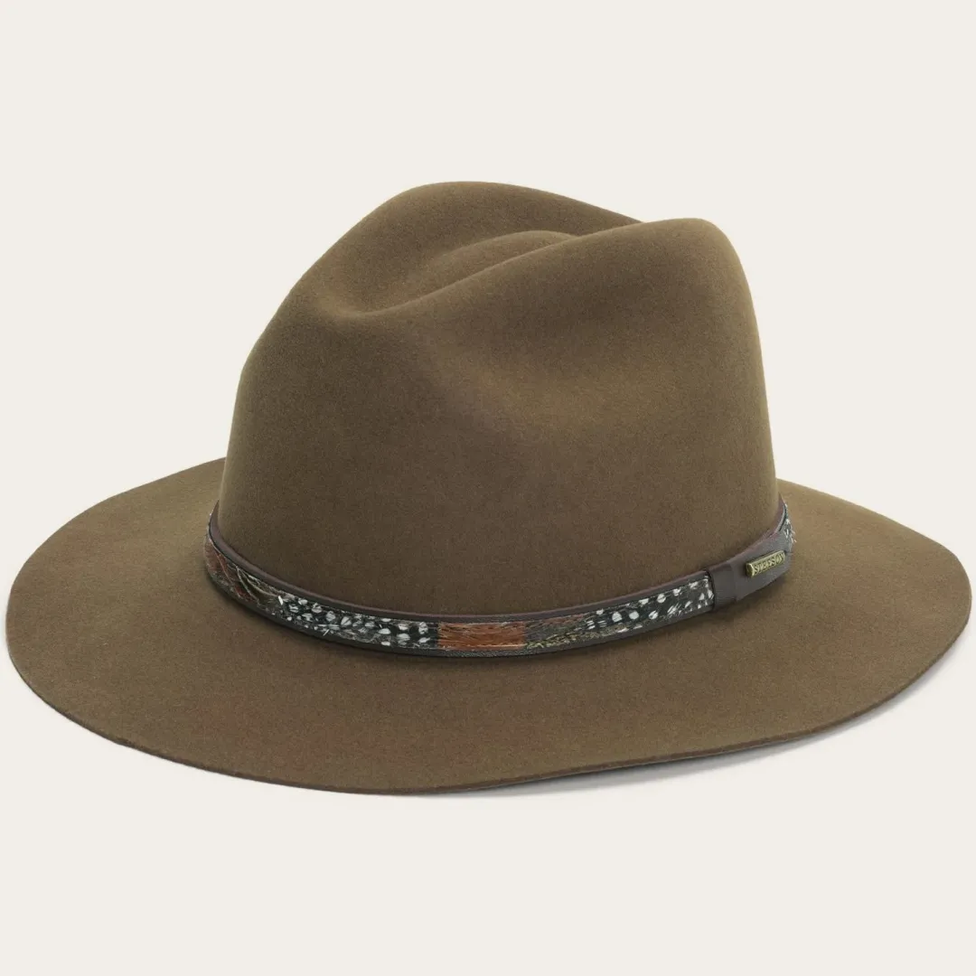 One look at the Jackson will have you dreaming of getting outside, off the beaten trail, and into the wild. Beloved for both its practicality and unique style, it’s the perfect hat to pull on before heading into the unknown. Made from a blend of quality felt and soft merino wool, it’s water-resistant, lightweight, and easy to care for. Dyed in two handsome shades inspired by nature’s warmth — Bronze and Sage — it features a subtle pinch-front crown and slender bound-edge brim. At once discreet and distinctive, the eye-catching hatband is accented with natural quail feathers for a subtle dose of texture and color. An outdoor essential that’s made to last, the Jackson is a top choice for heading into the hills, camping, and more.