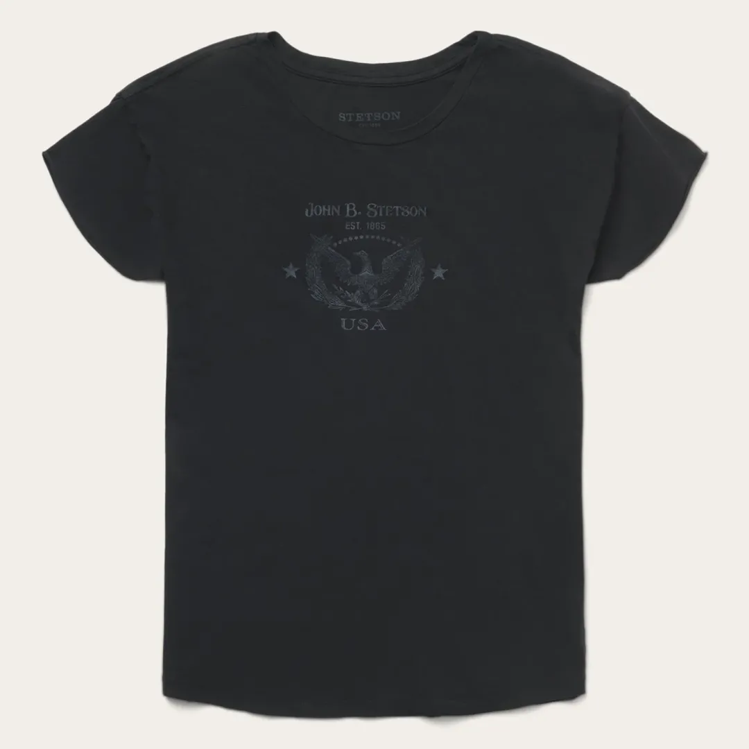 Nothing says good times like the relaxed feel of a graphic tee. Designed for maximum comfort without sacrificing an ounce of style, our t-shirts are made from airy cotton and screen-printed with custom signature graphics. This Western Stetson tee has been gently distressed, providing the perfect worn-in look for the spirited cowgirl. Go casual with a pair of jeans and boots, or dress things up with a skirt and sandals — however you decide to wear it, this shirt will see you through your day and then some. Extra soft and cut with the perfect slim fit, it’s an instant classic.