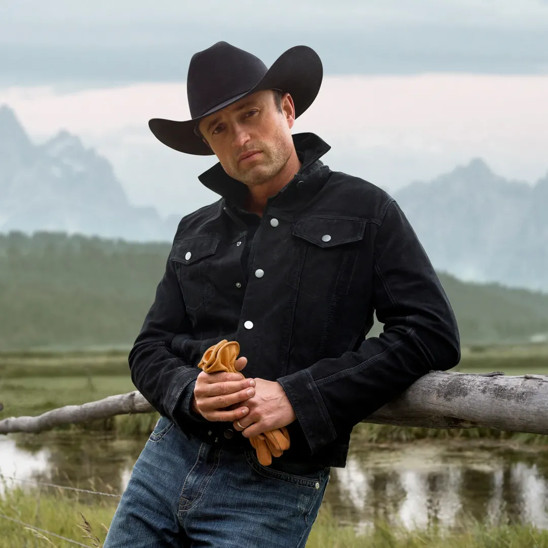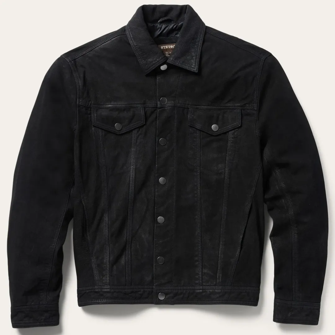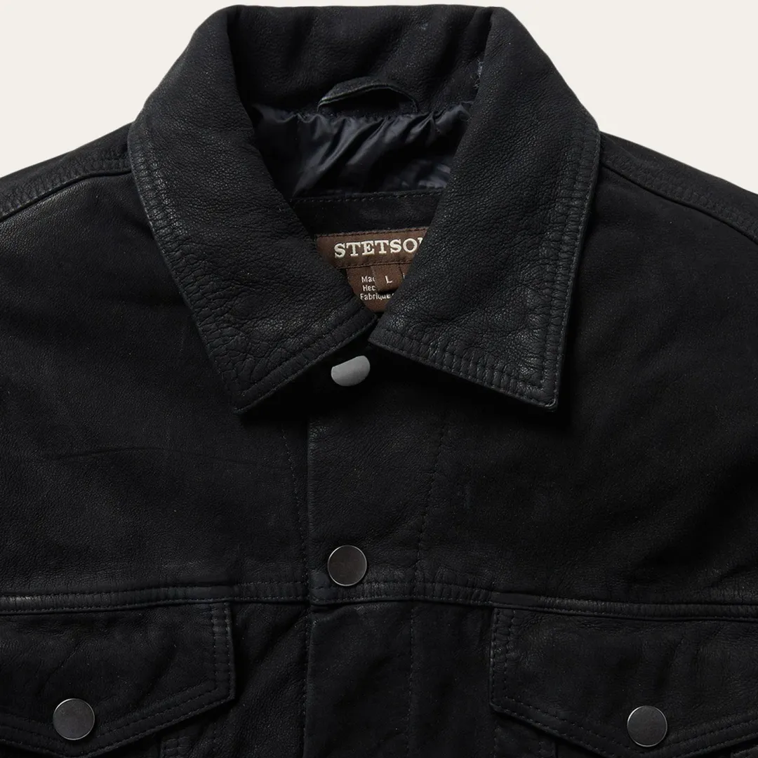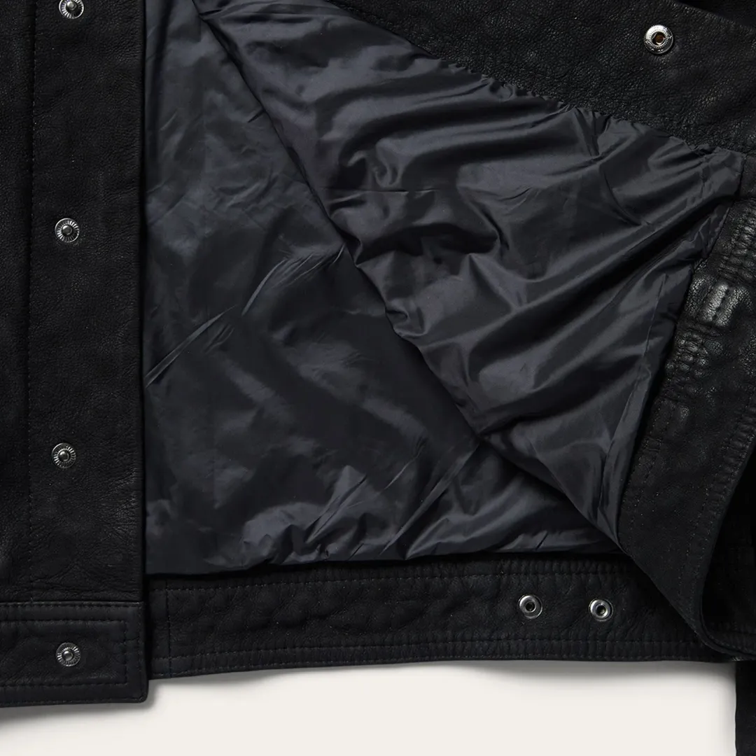 An homage to the all-American jean jacket – but made with tough as nails, high-quality leather. This distressed jacket is warm, rugged and durable, and features a fast-action snap front, straight front and back yokes, and single-point chest pockets.