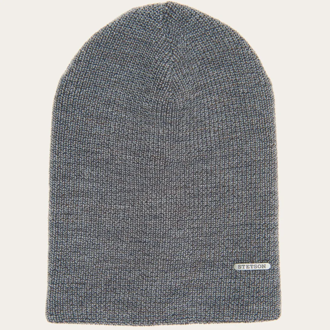 The Long Wool Beanie is constructed of merino wool and is structured with ribbing and a modest metal tag.