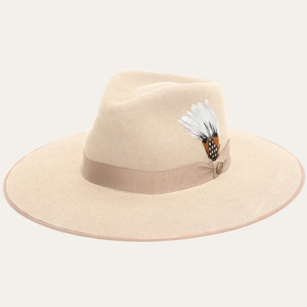 With a wide, flat brim, the Midtown Wide Flat Brim Hat is a rakish hat that, true to its name, exudes city style. Made in Texas from firm high-quality felt, it features a grosgrain ribbon hat band accented by a bold feather accent. On the interior, an absorbent Dri-Lex sweatband ensures it’s as comfortable as it is stylish.
