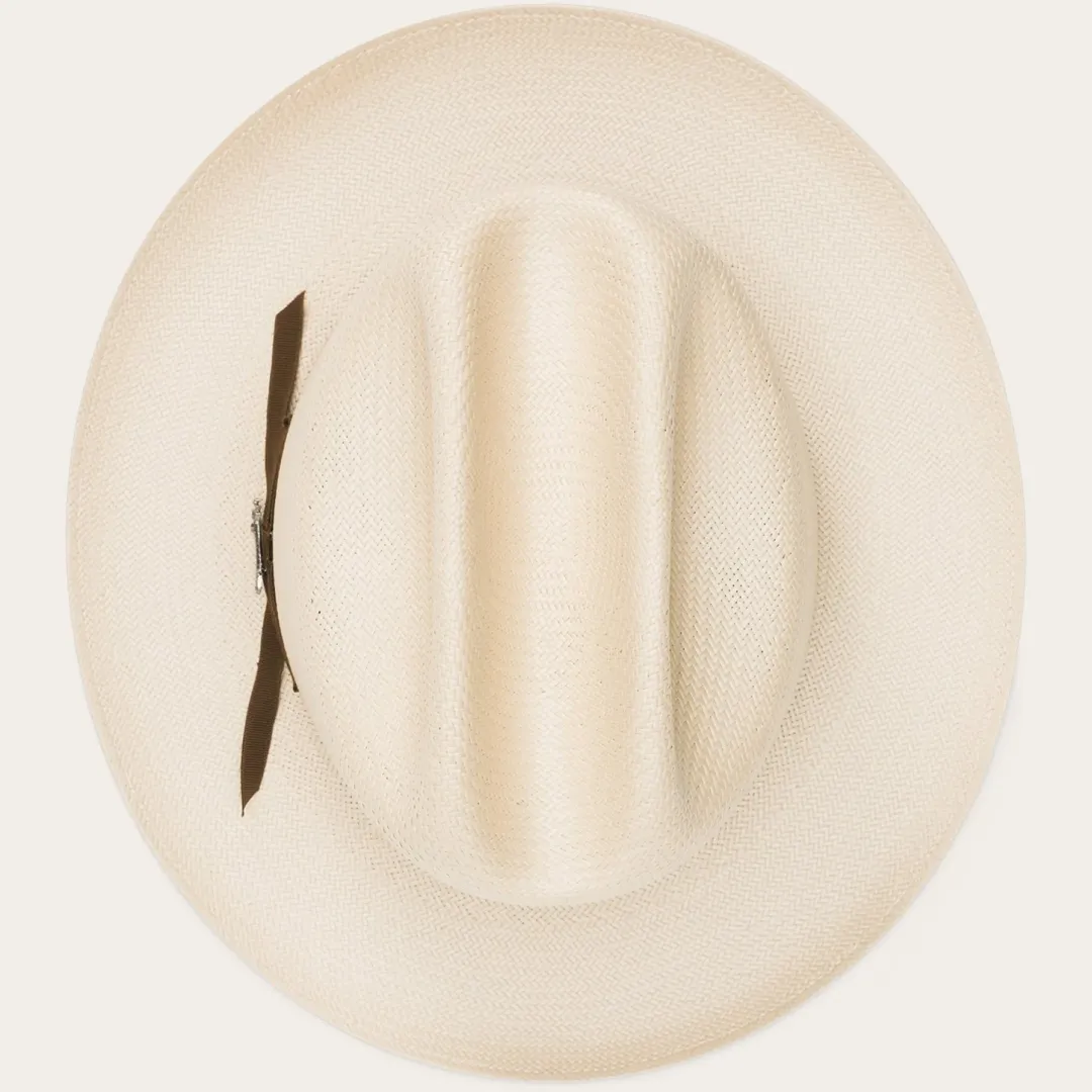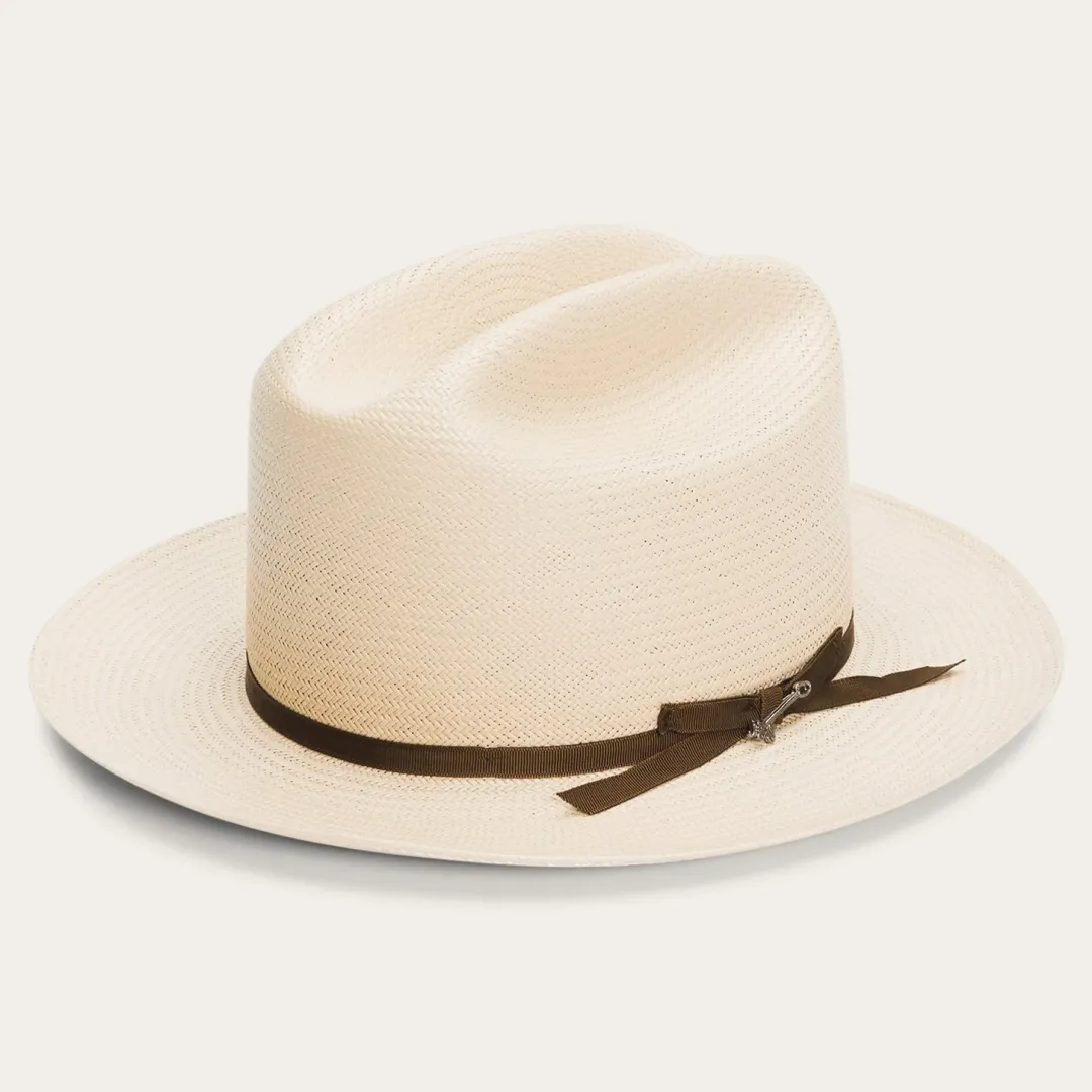 The Open Road Straw features a genuine leather sweatband and a 4 ¼” crown outfitted with a satin hat band.