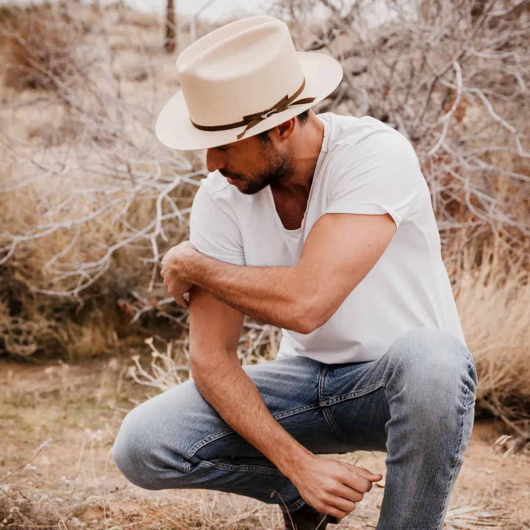 Introduced in 1937, the Open Road was originally sold with an open crown, which could then be creased to the customer’s liking. Since 1948, it has been finished with a traditional, hand-pressed cattleman crease, and has been worn by modern pioneers and trailblazers ever since, from artists and outlaws to Presidents (including, most notably, LBJ, who was rarely photographed on his Texas ranch without his Open Road).