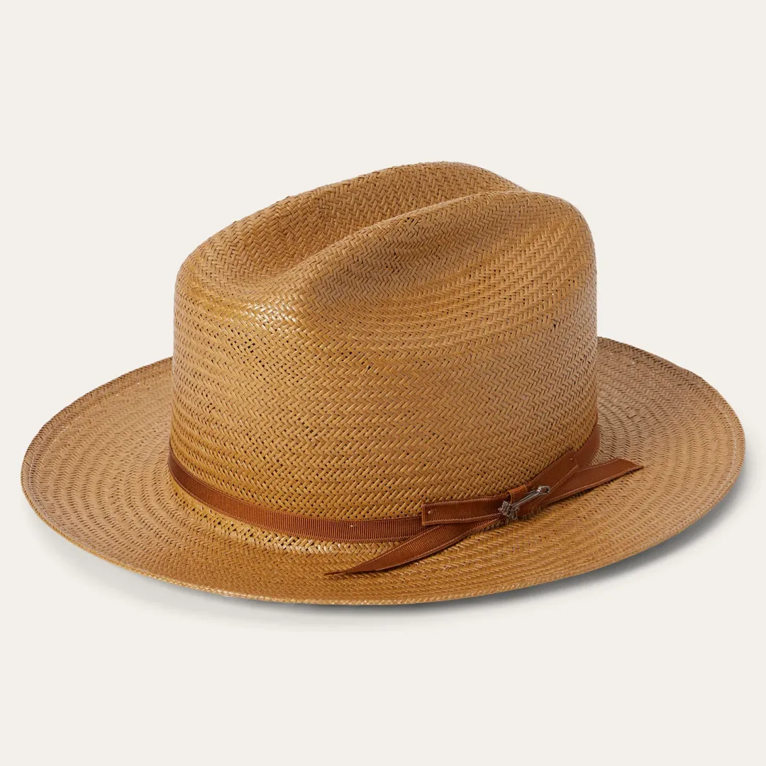 A true legend, our signature Open Road offers a timeless blend of city style and Western tradition. The Open Road Straw Hat is crafted with a firm finish from high-quality 100% Shantung straw. Featuring the Open Road’s signature profile including an iconic 4” cattleman crown and 2 3/4” brim, it is completed with a subtle satin hat band and a genuine leather sweatband that ensures all-day comfort and a superior fit. Handmade in the USA, it offers classic style for the modern American man or woman.