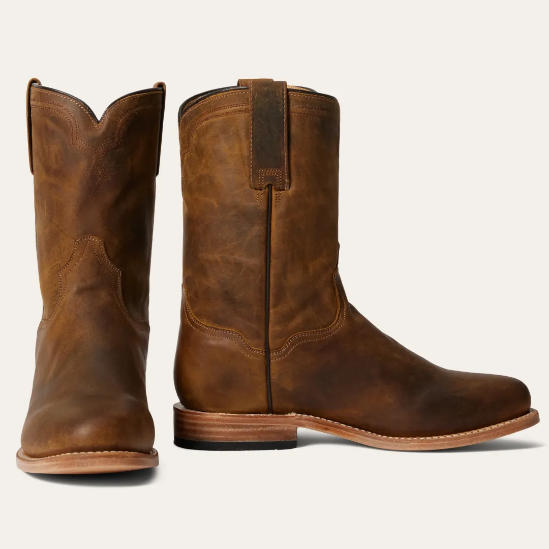 Leather boots made the old-fashioned way: with grit, determination and a acute eye for detail. Handcrafted by Stetson’s legendary bootmakers from Leather that’s designed to patina handsomely over time. Features include premium cow lining, full welt soles, brass nails and removable Tru-X insoles to provide additional support on long hikes. Built for riding, each pair is lasted, stitched and tooled by hand to ensure absolute comfort and performance. Frontier-tough, they conform to the wearer over time for years of reliable service. A classic addition to any wardrobe, these boots are a fitting companion for adventurers, cowboys, and gentlemen alike — anyone with a strong appreciation for objects that are made well and get better with age.