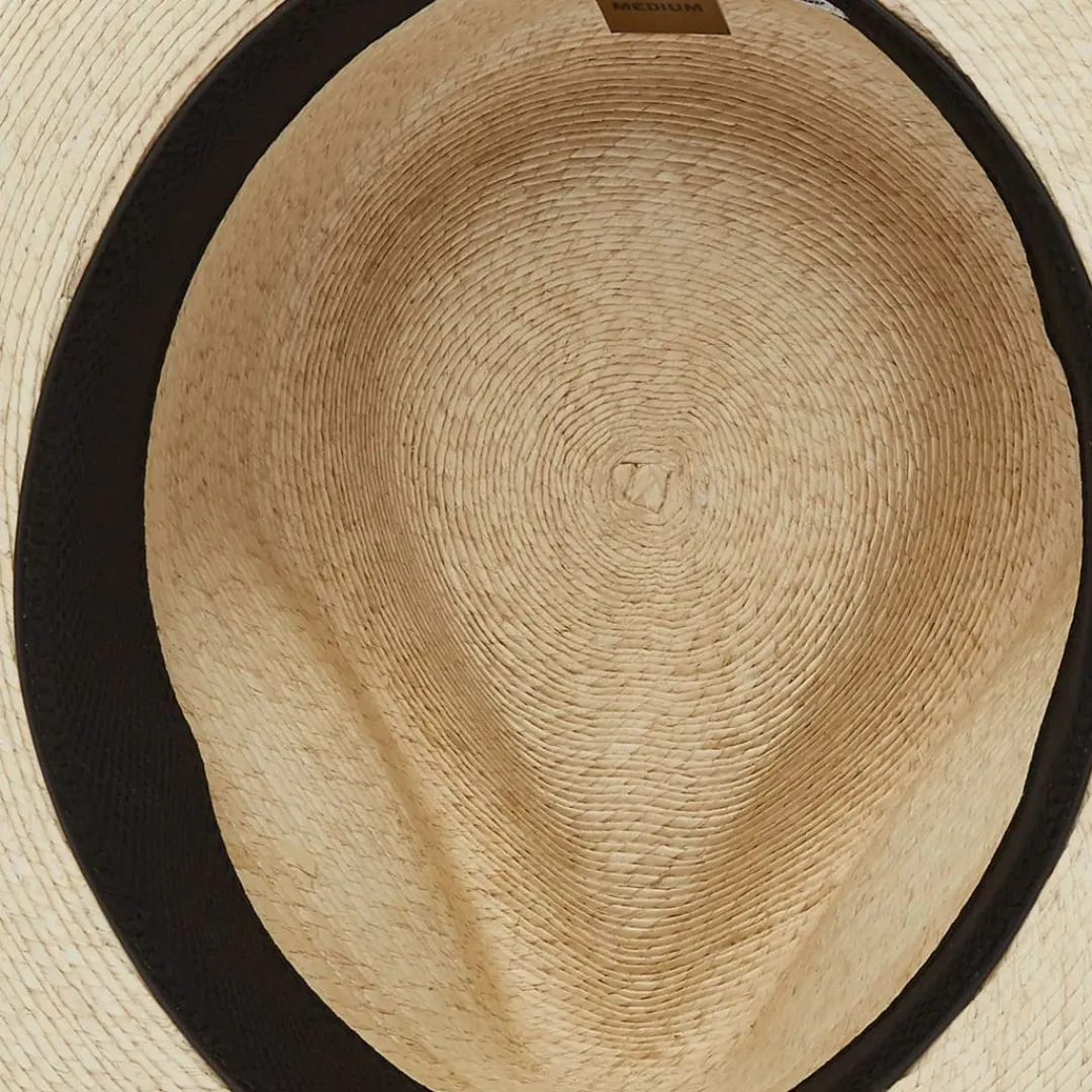 The Rushmore Fedora is constructed of rugged palm leaf straw and features a classic teardrop crown, absorbent internal sweatband and is finished with a classic grosgrain hat band.