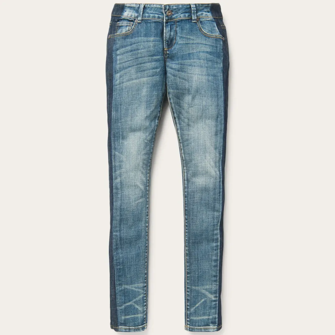 Details include subtle back pockets, side stripe detailing, whiskers, and a lightly hand-sanded fade for the perfect worn-in feel. The complete look is finished off with custom Stetson-branded hardware. Designed to look great, fit right, and work hard, the careful styling of these Western jeans is made for women with an independent spirit and love of heritage craftsmanship.