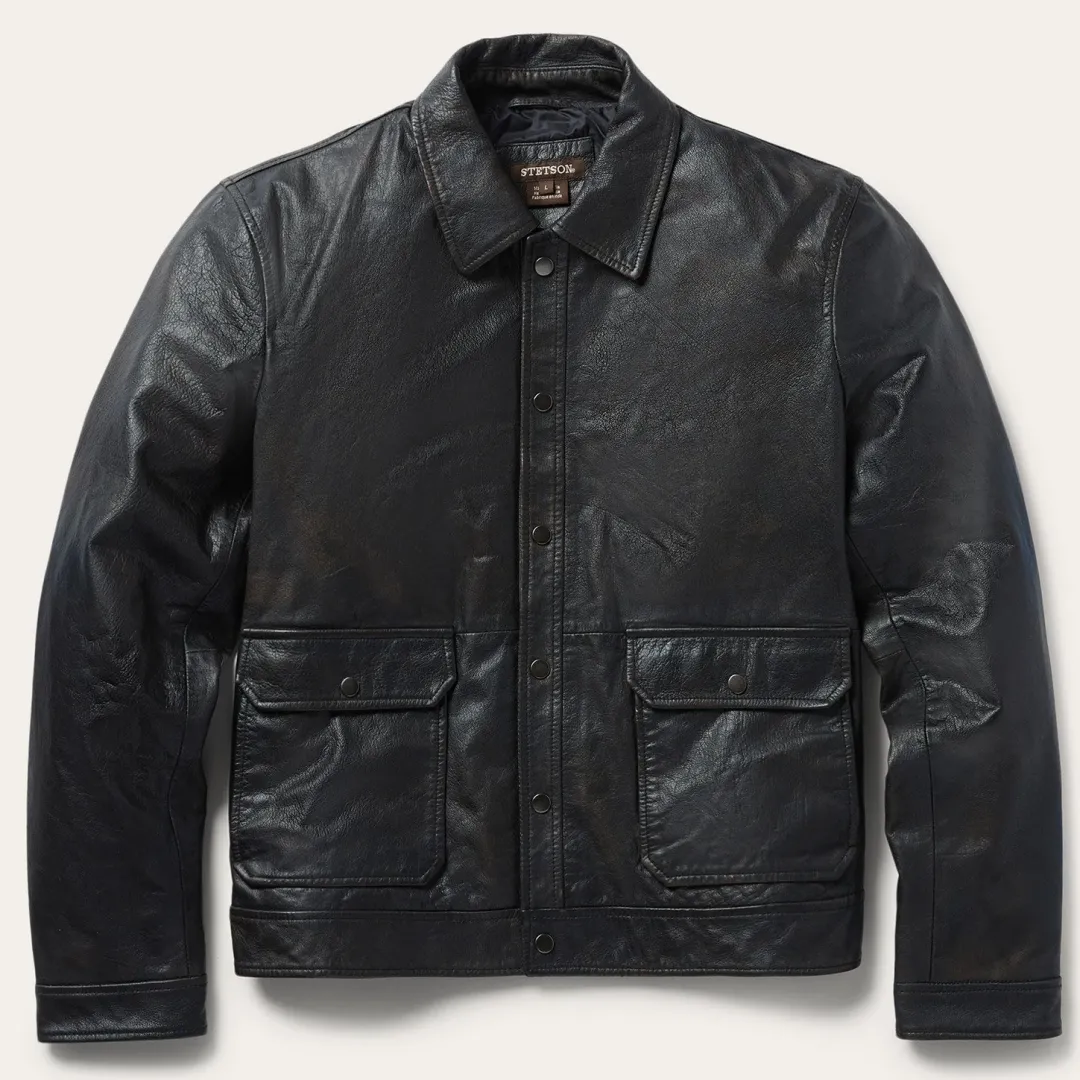 There’s only one Stetson and the same quality and attention to detail that goes into our world-famous boots and hats goes into our apparel. Built tough with high-quality leather, this distressed leather jacket is warm, rugged and durable, and features a fast-action snap front, straight back yoke, and snap-closure chest pockets.