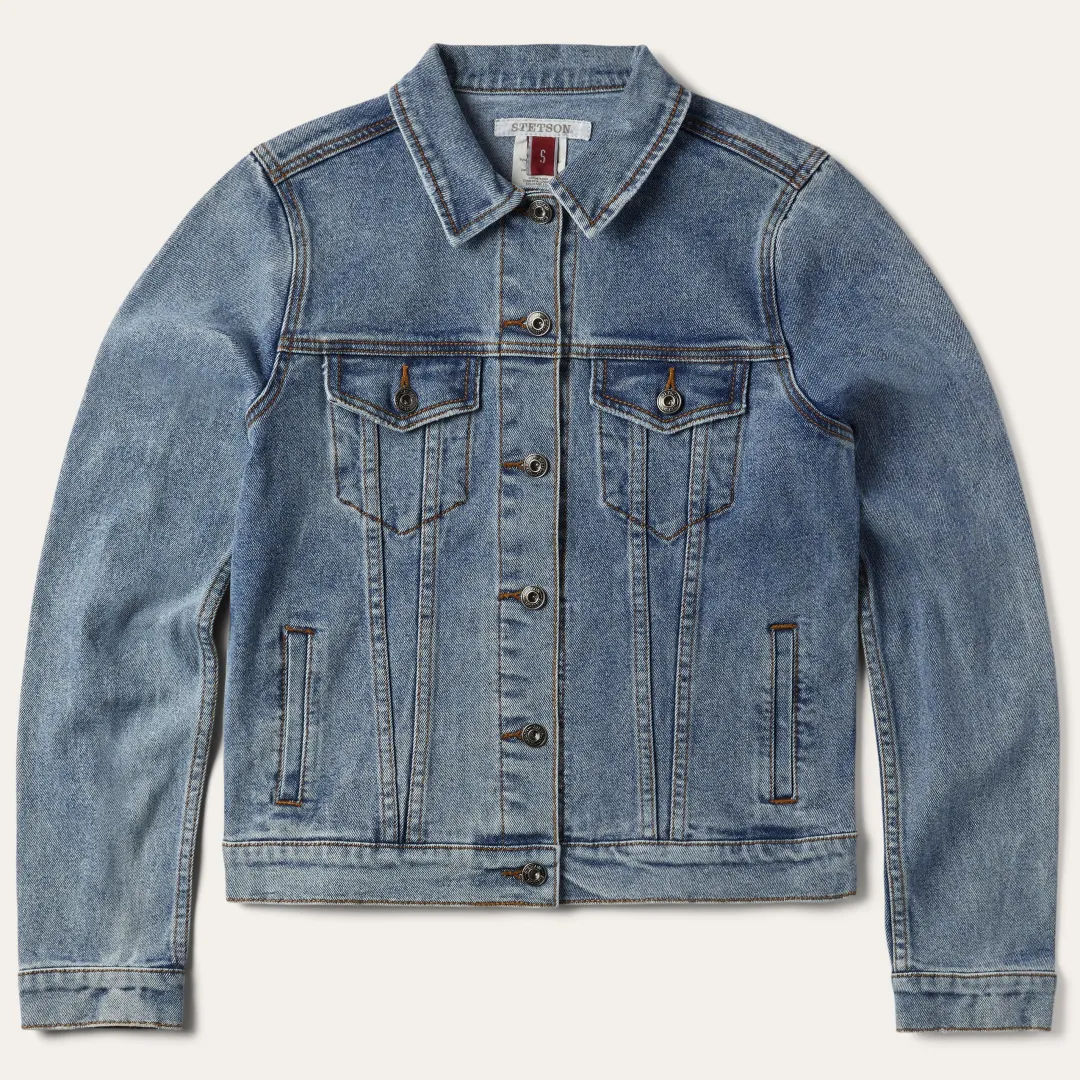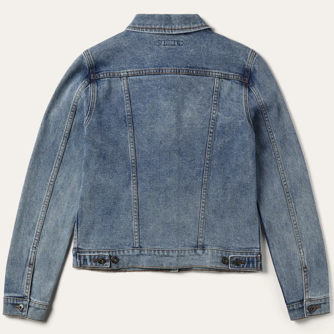 Dependable, durable, and always in style, a great denim jacket is the perfect layer for transitional seasons and anywhere where the nights get a little chilly. Ours has a classic look with a sun-faded wash and is made with a hint of stretch for comfort and freedom of mobility. It features straight front and back yokes, front and back seams, single point pockets and flaps, side welt pockets, back waist tabs and drop shoulders.