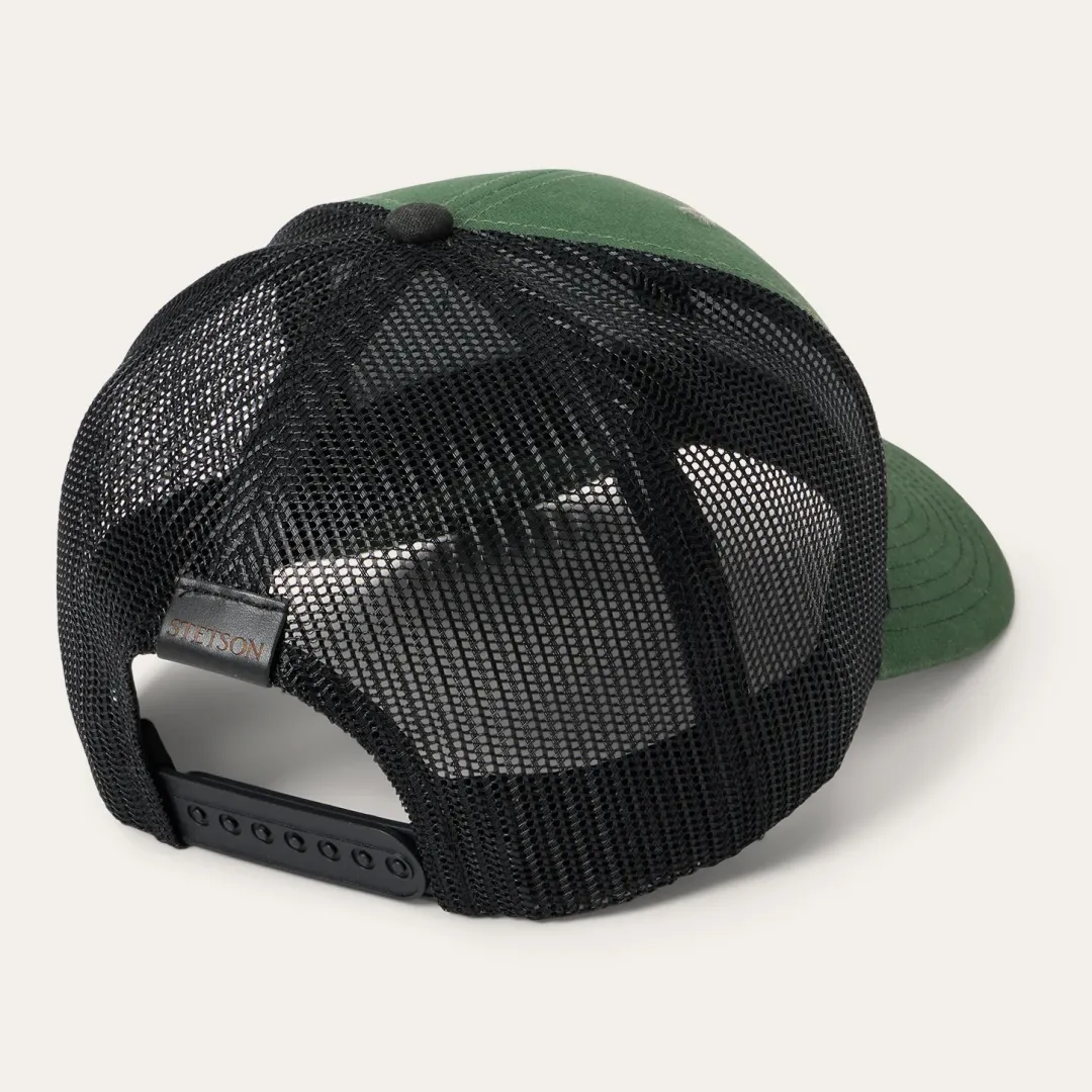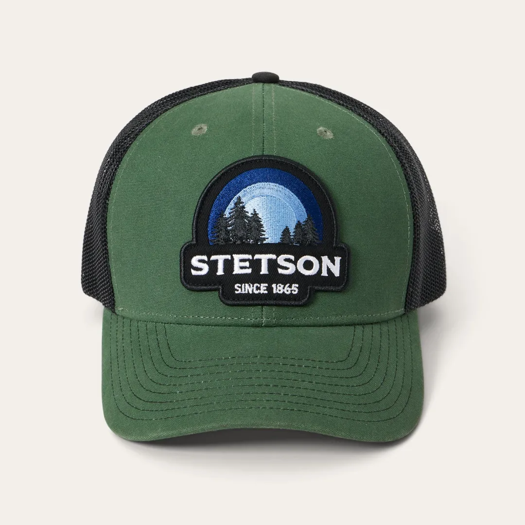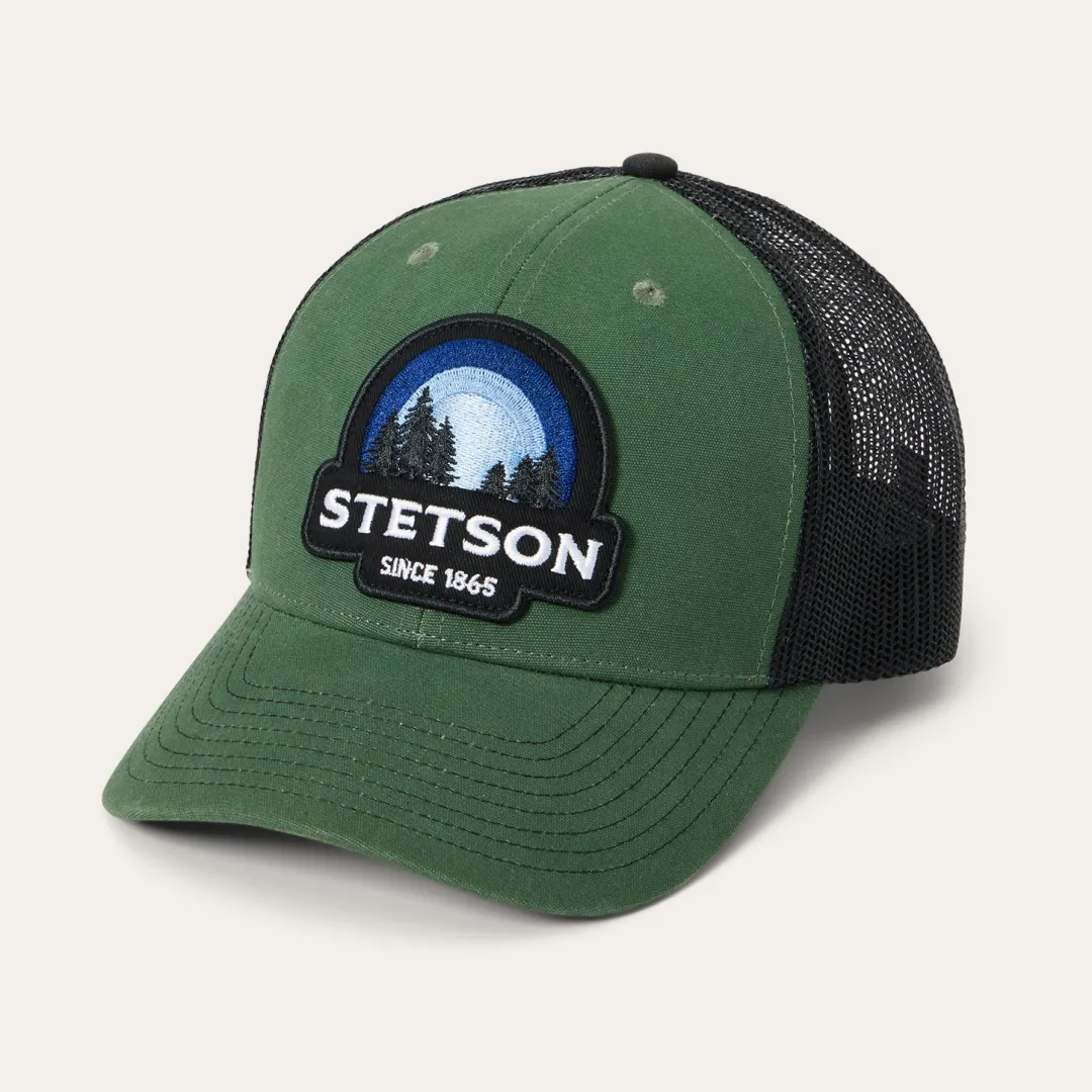 This classic trucker cap features a vibrant, embroidered STETSON Sunset logo patch. Crafted with a rugged brushed canvas front, it has a mesh back for breathability and ventilation, a gently curved bill and a classic snap back closure to ensure a secure, adjustable fit.