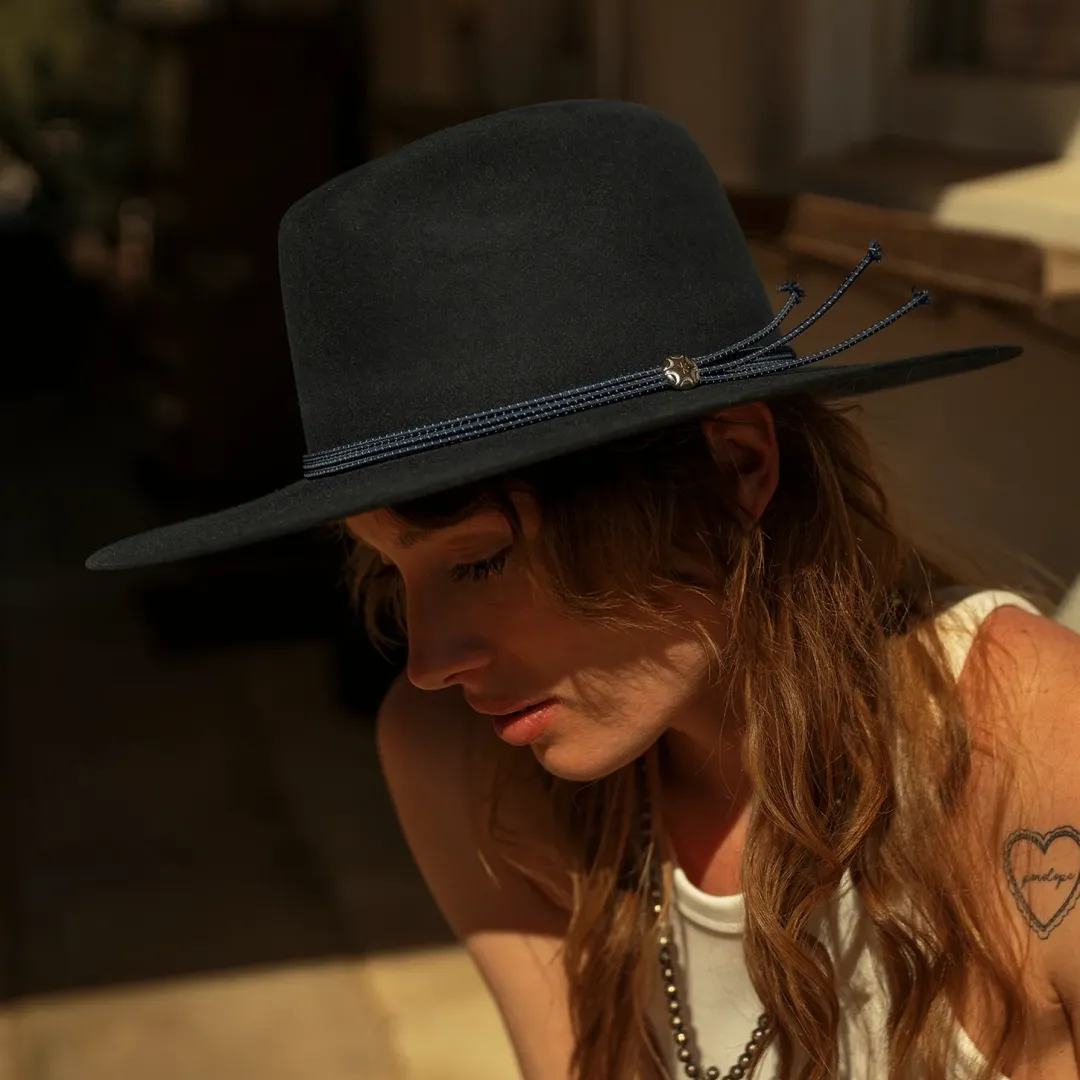 Part of the new Stetson Seeker collection, the Four Points is a Western-inspired hat designed for adventurers that traverse the outdoors and the city. In a midnight navy blue, the Four Points features a matching cord band, an interior cowhide sweatband and a firm, and 6X quality fur felt construction. Proudly made in Texas.