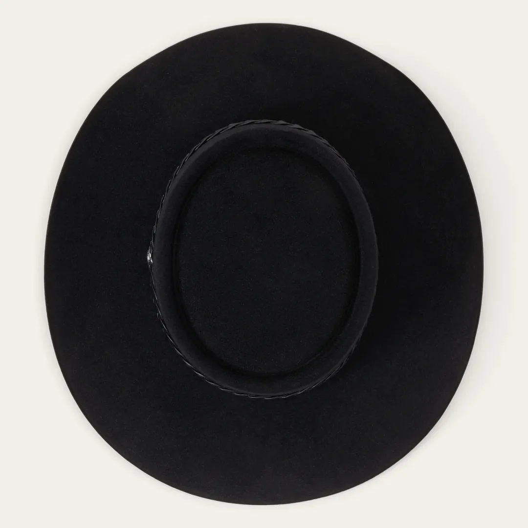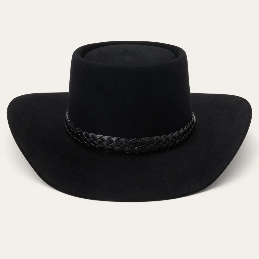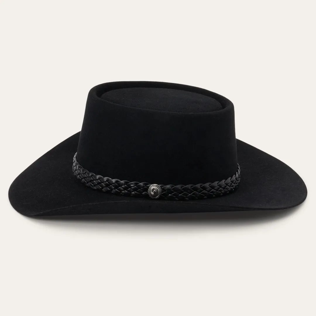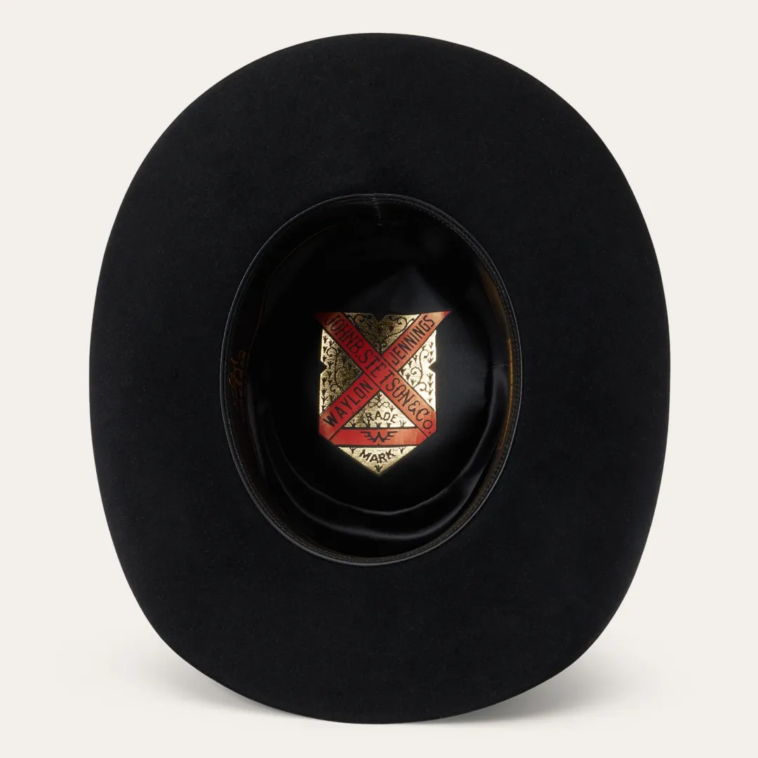 The Lash will forever be famous as the signature style of legendary country musician (and native Texan), Waylon Jennings, who wore it on the cover of his 1979 “Greatest Hits” album. Made from 6X quality fur felt and featuring a firm finish, its classic Western profile features a 4” oval gambler crown and 3 1/2” brim, complimented by a tooled leather hat band with starburst concho. A premium roan leather sweatband with gold lacing and a full satin liner provide exceptional comfort and a superior fit and a classic Stetson hat box is included. Handmade in the USA (Texas, specifically), the Lash is a legend in its own right.