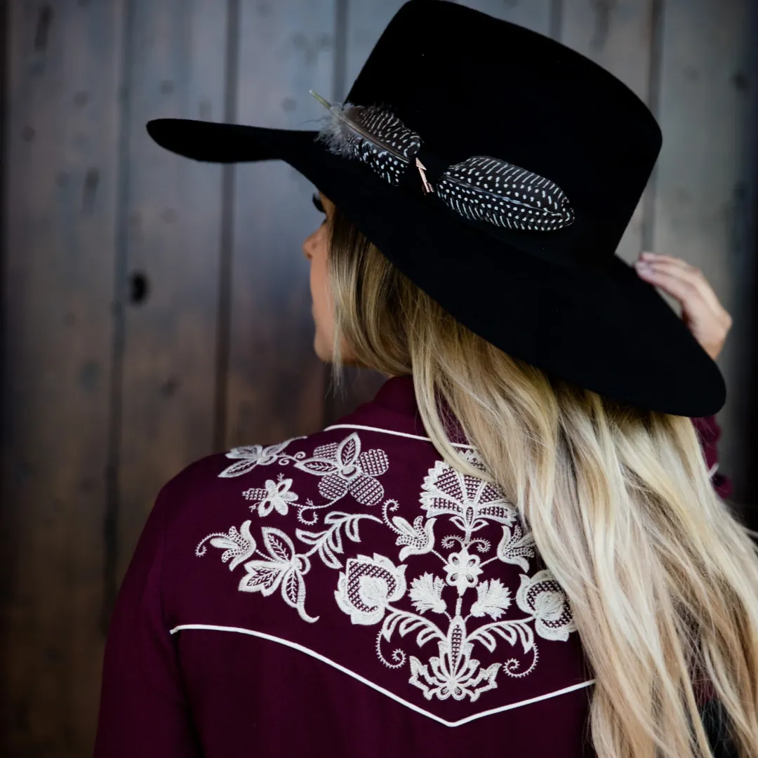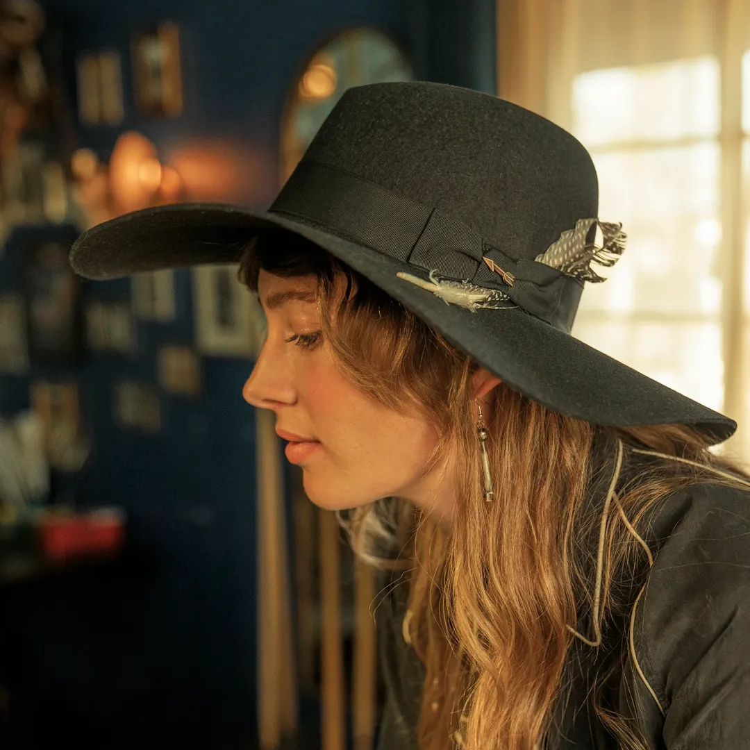 Part of the new Stetson Seeker collection, the Rapture is a Western-inspired, outdoor-ready, soft felt hat designed for adventurers that traverse the outdoors and the city. Available in a rich mushroom or deep black hue, the Rapture features an interior cotton sweatband and extra-wide brim at 4 ½ inches. Distinctive and practical, the Rapture is styled with a natural feather and rich ribbon. Proudly made in Texas.