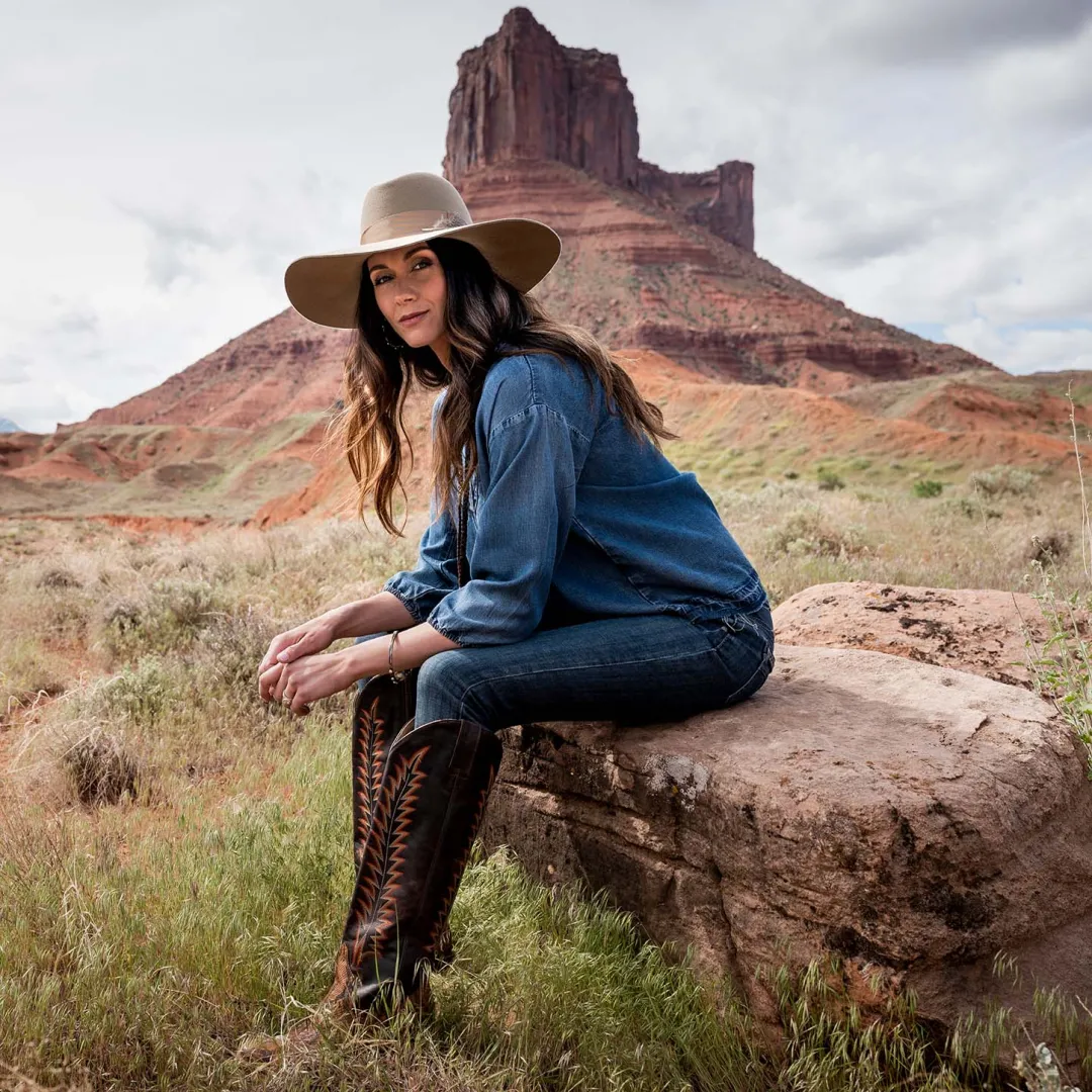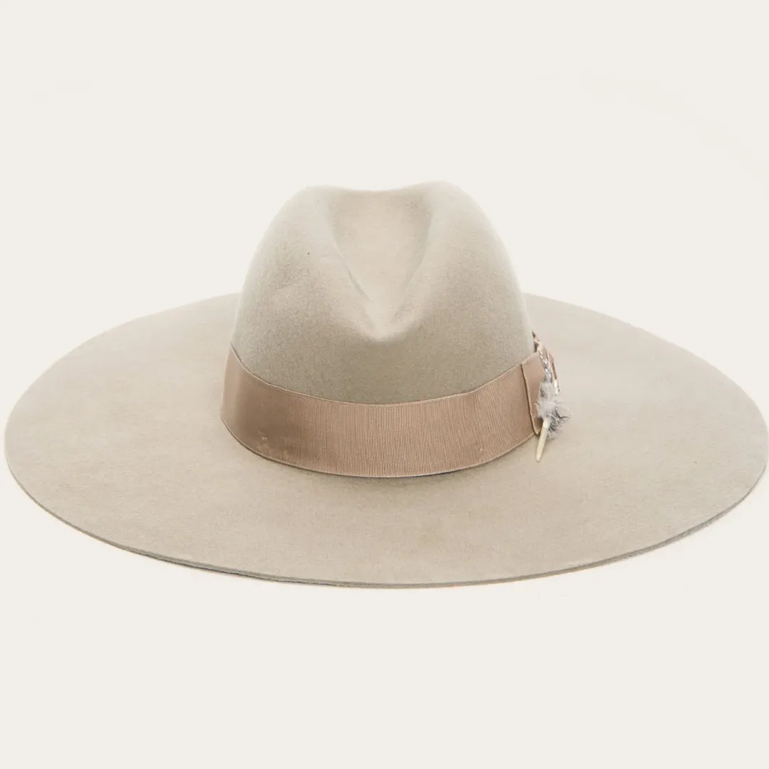 Part of the new Stetson Seeker collection, the Rapture is a Western-inspired, outdoor-ready, soft felt hat designed for adventurers that traverse the outdoors and the city. Available in a rich mushroom or deep black hue, the Rapture features an interior cotton sweatband and extra-wide brim at 4 ½ inches. Distinctive and practical, the Rapture is styled with a natural feather and rich ribbon. Proudly made in Texas.