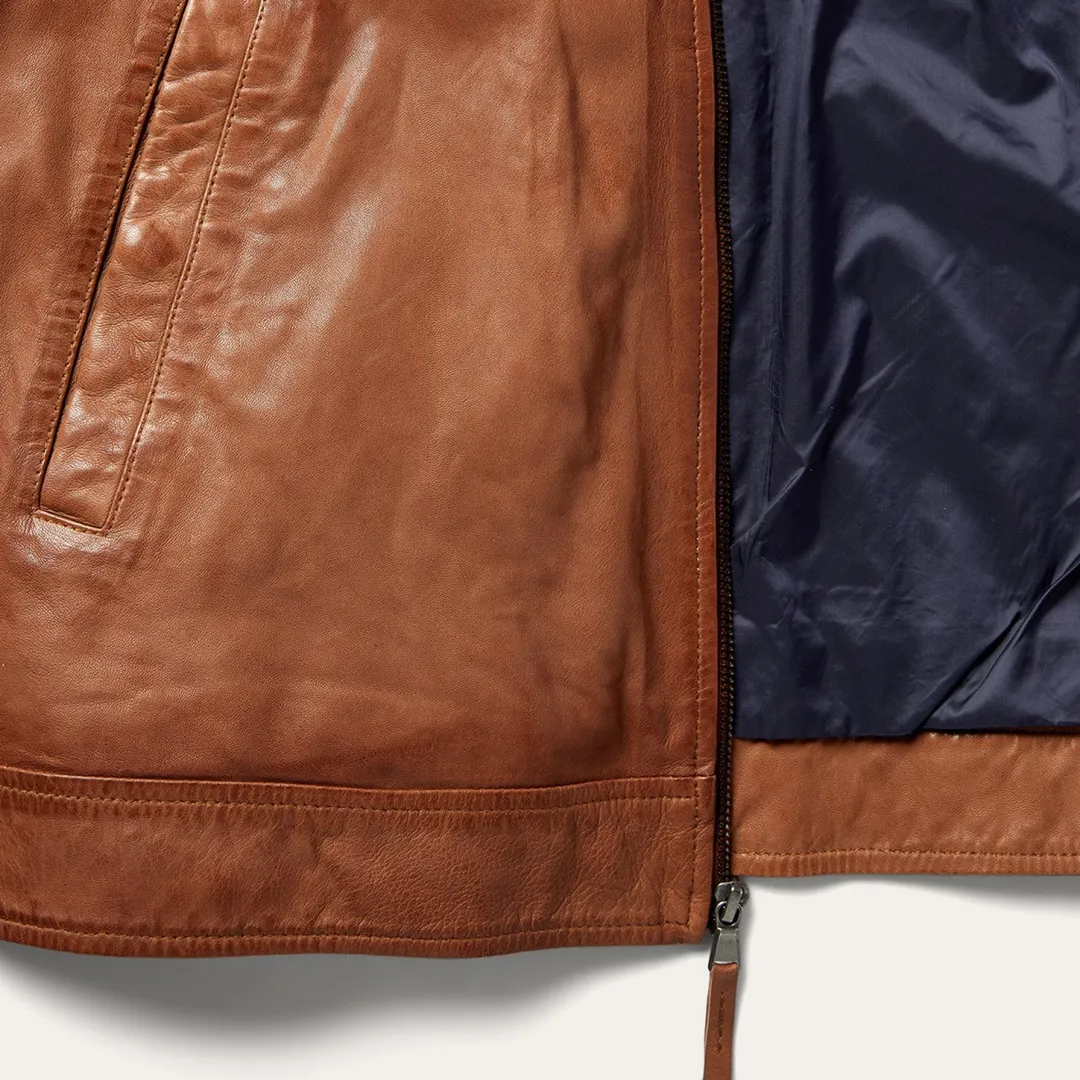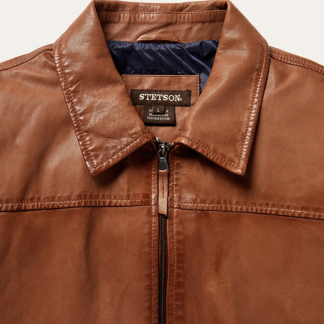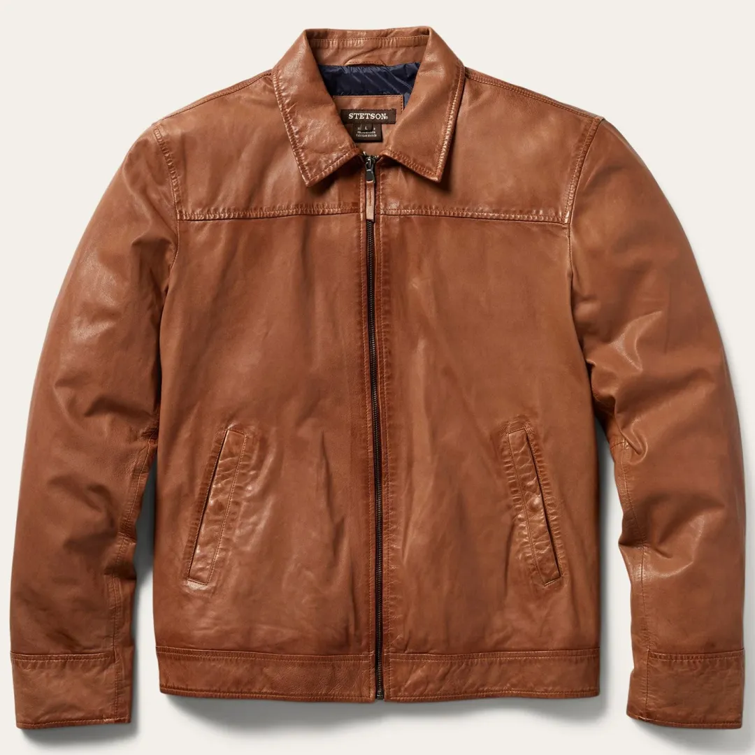 There’s only one Stetson and the same quality and attention to detail that goes into our world-famous boots and hats goes into our apparel. Built tough with high-quality leather, this burnished leather jacket is warm, rugged and durable, and features a snug zip-up front, straight front yoke, and welt hand pockets.