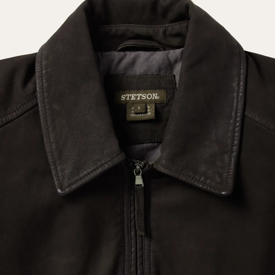 This rugged and durable suede leather jacket has a full front welted zip closure, welt hand pockets, a drop shoulders, leather zipper pulls and front and back seam details. Fully lined for additional warmth and comfort, its made for an adventurous lifestyle. At Stetson, we use the toughest materials and fabric to provide you with the best Western outerwear for men who spend their days in the great outdoors.