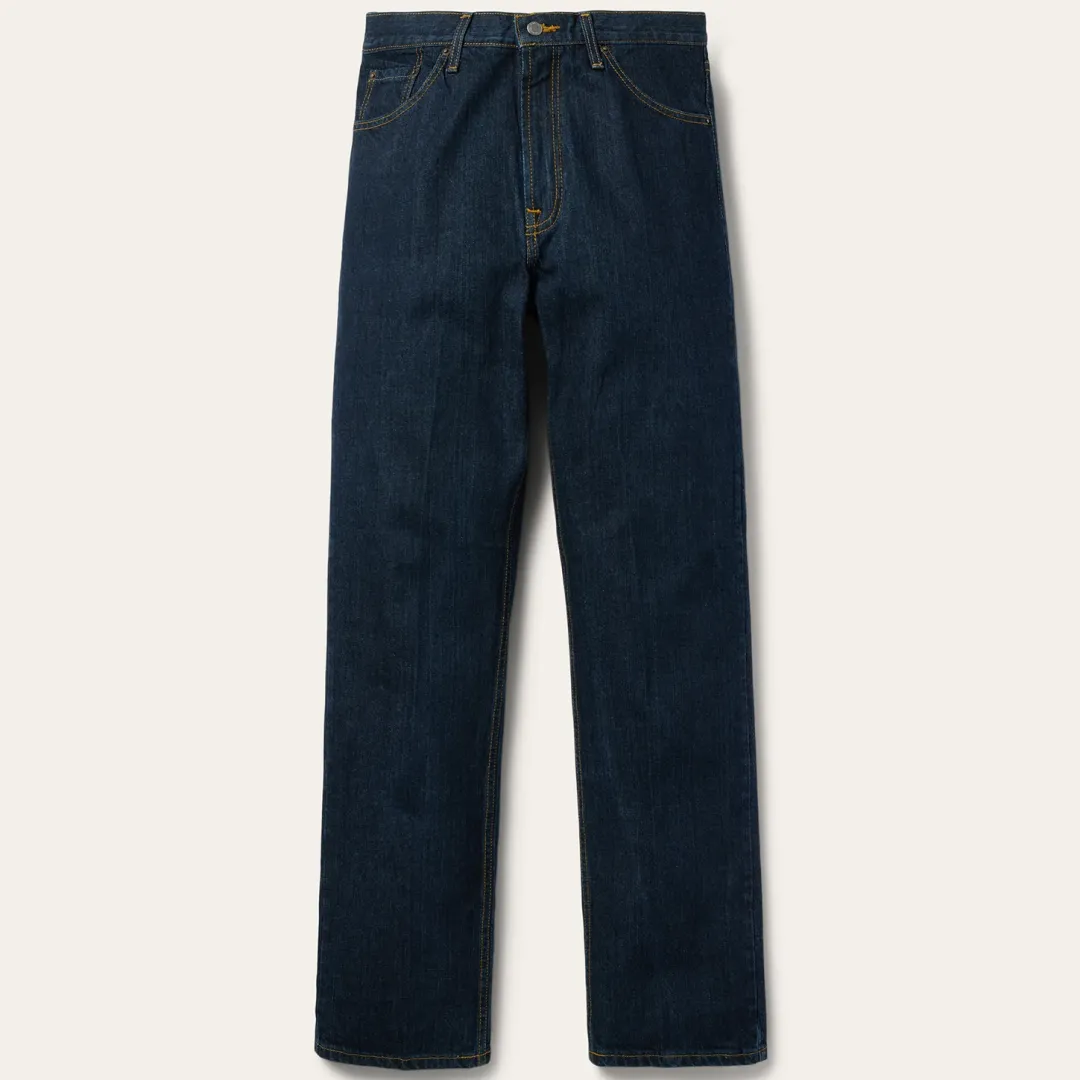 The 1520 Fit Standard Straight Leg jeans are crafted from high-quality 100% cotton denim with a dark wash. The 5-pocket style is cut with a mid rise, the leg is relaxed through the thigh, with a bootleg opening. Additional features include a button fly with Stetson branded buttons, contrast top stitching and decorative “X” seaming on the back pockets. Made to last and built to be broken in, this is quality denim you can rely on.