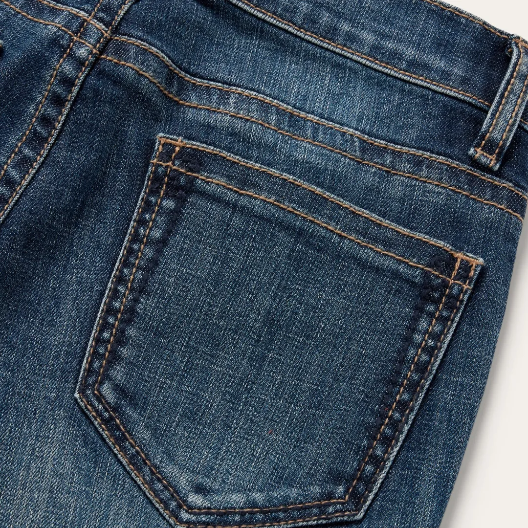 These 921 High Rise Flare jeans are crafted from durable cotton denim with just enough stretch for ease and comfort. Featuring a slim fit through the thigh and knee with a dramatic flare leg opening, the classic five pocket style features a plain back pocket, and Stetson branded buttons, rivets, and zipper. Finishing touches, like gentle sanding and whisker details, complete the jeans for that perfect lived-in look.