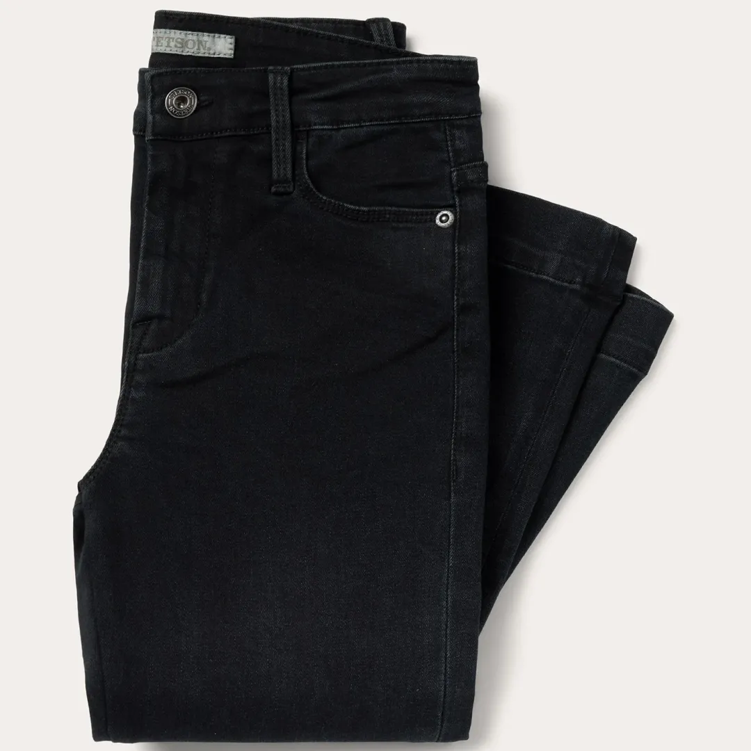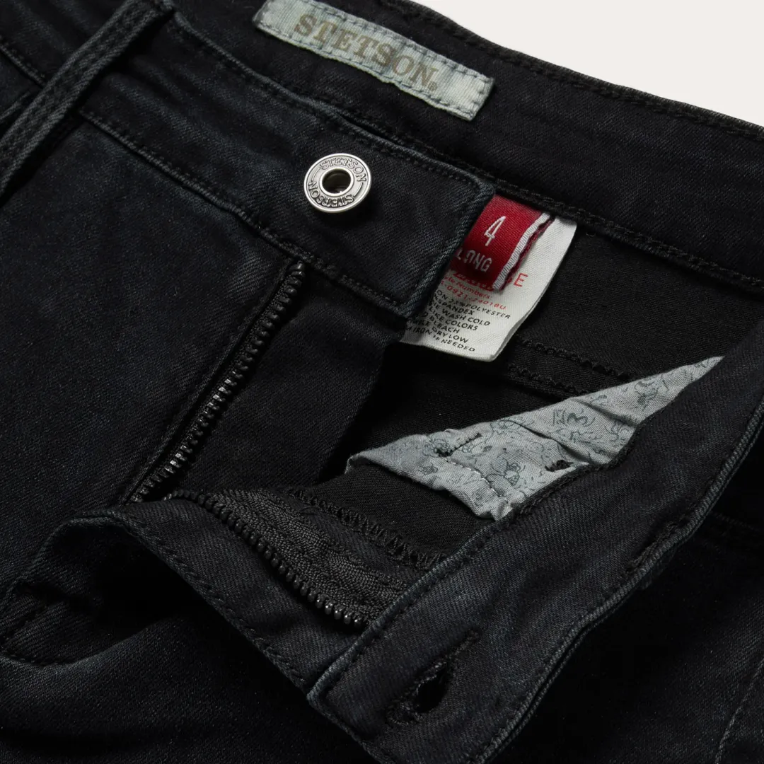 These 921 High Rise Flare Jeans are crafted from black cotton denim with just enough stretch for comfort and ease of movement. Designed to sit at the natural waist, they have a slim fit through the thigh and knee that flares out into a stylish bootcut leg opening. The classic 5-pocket style features plain back pockets and Stetson branded buttons, rivets, and zipper. Subtle sanding details complete the jeans for a perfect lived-in look.