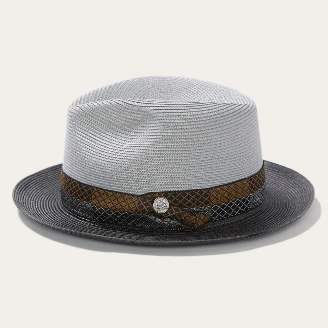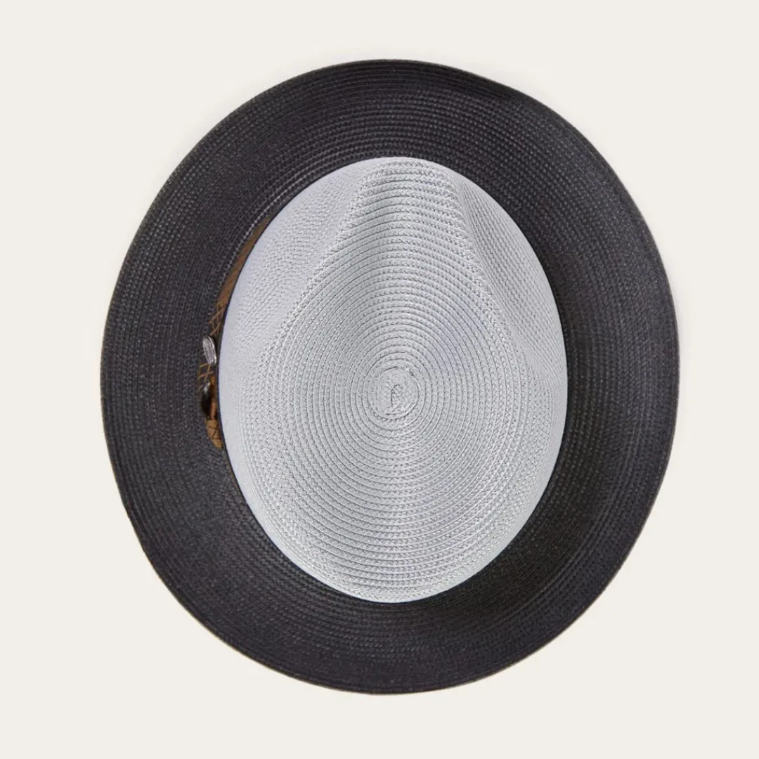 The Andover Milan Fedora is constructed of firm finish, florentine Milan straw and features a cowhide interior sweatband and patterned grosgrain hat band.