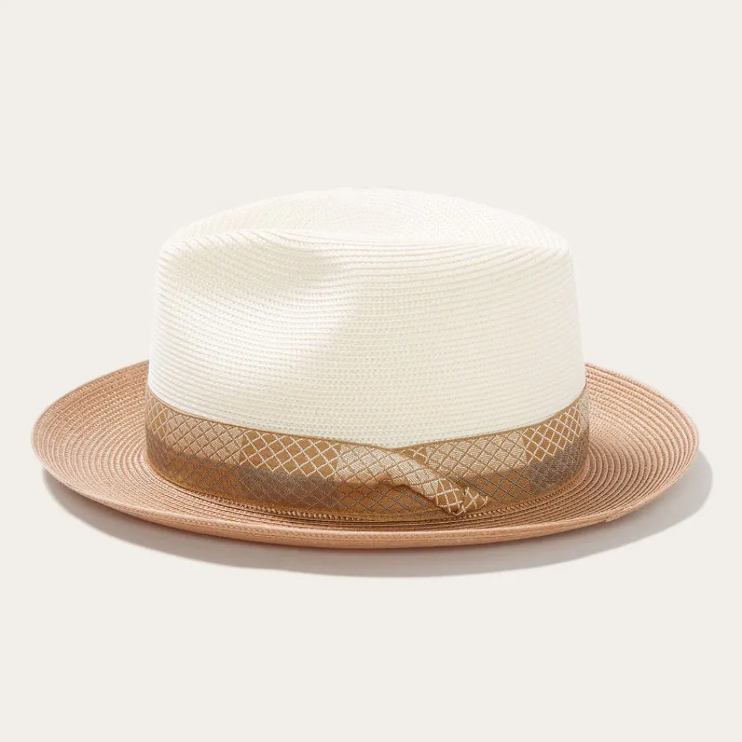 The Andover Milan Fedora is constructed of firm finish, florentine Milan straw and features a cowhide interior sweatband and patterned grosgrain hat band.