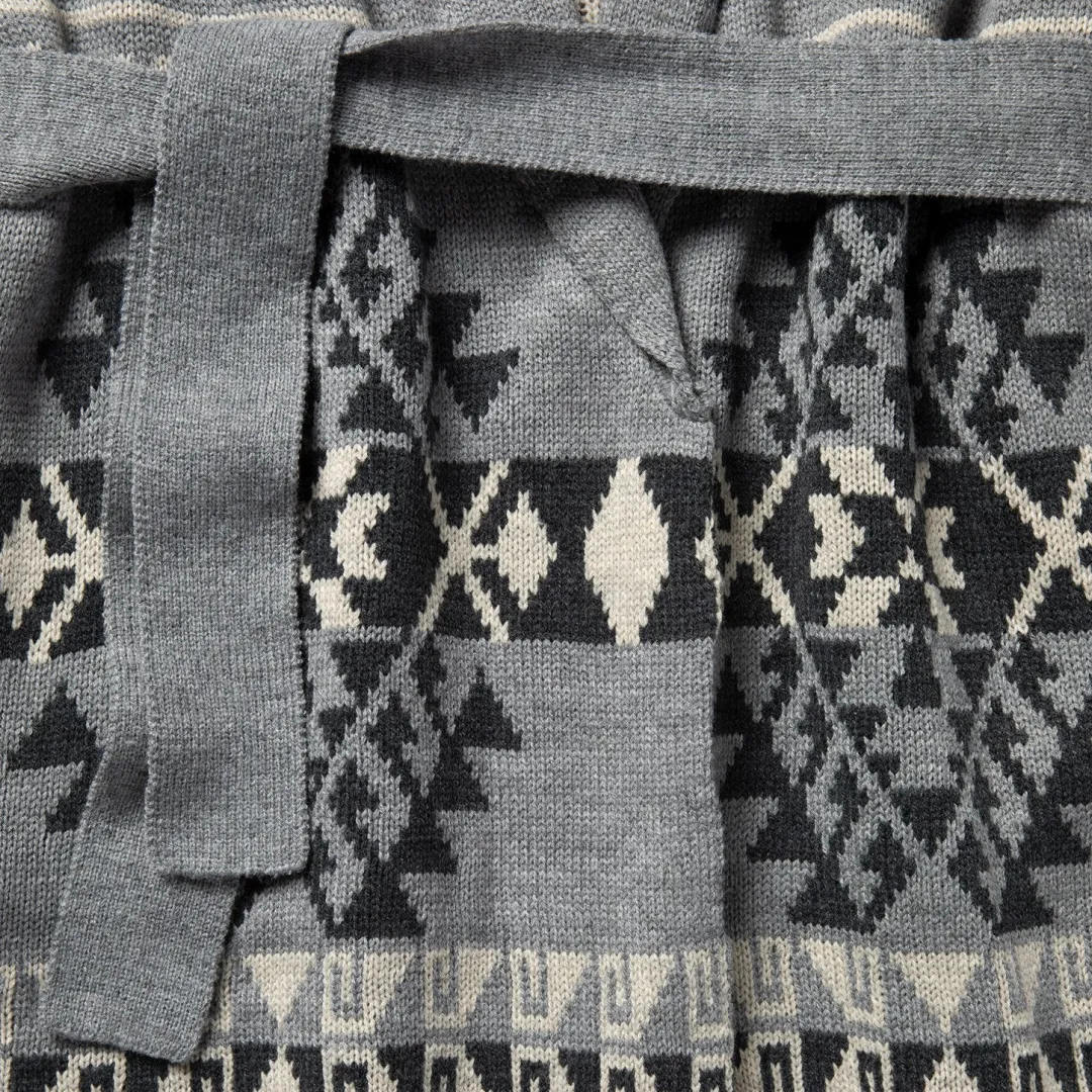 Ultra-plush, this chunky-knit shawl collared southwestern print sweater is dependable for warmth and comfort. Versatile and flattering, this piece can be belted or buttoned over your favorite jeans for a polished winter look.