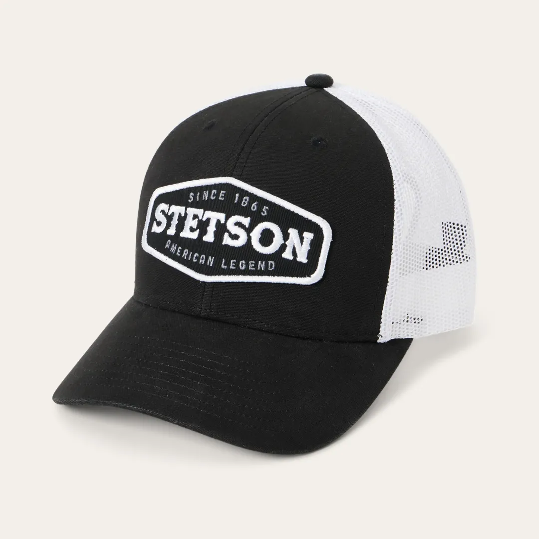 This classic trucker cap features an embroidered STETSON logo patch that honors our history and American heritage. Crafted with a rugged brushed canvas front, it has a mesh back for breathability and ventilation, a gently curved bill and a classic snap back closure to ensure a secure, adjustable fit.