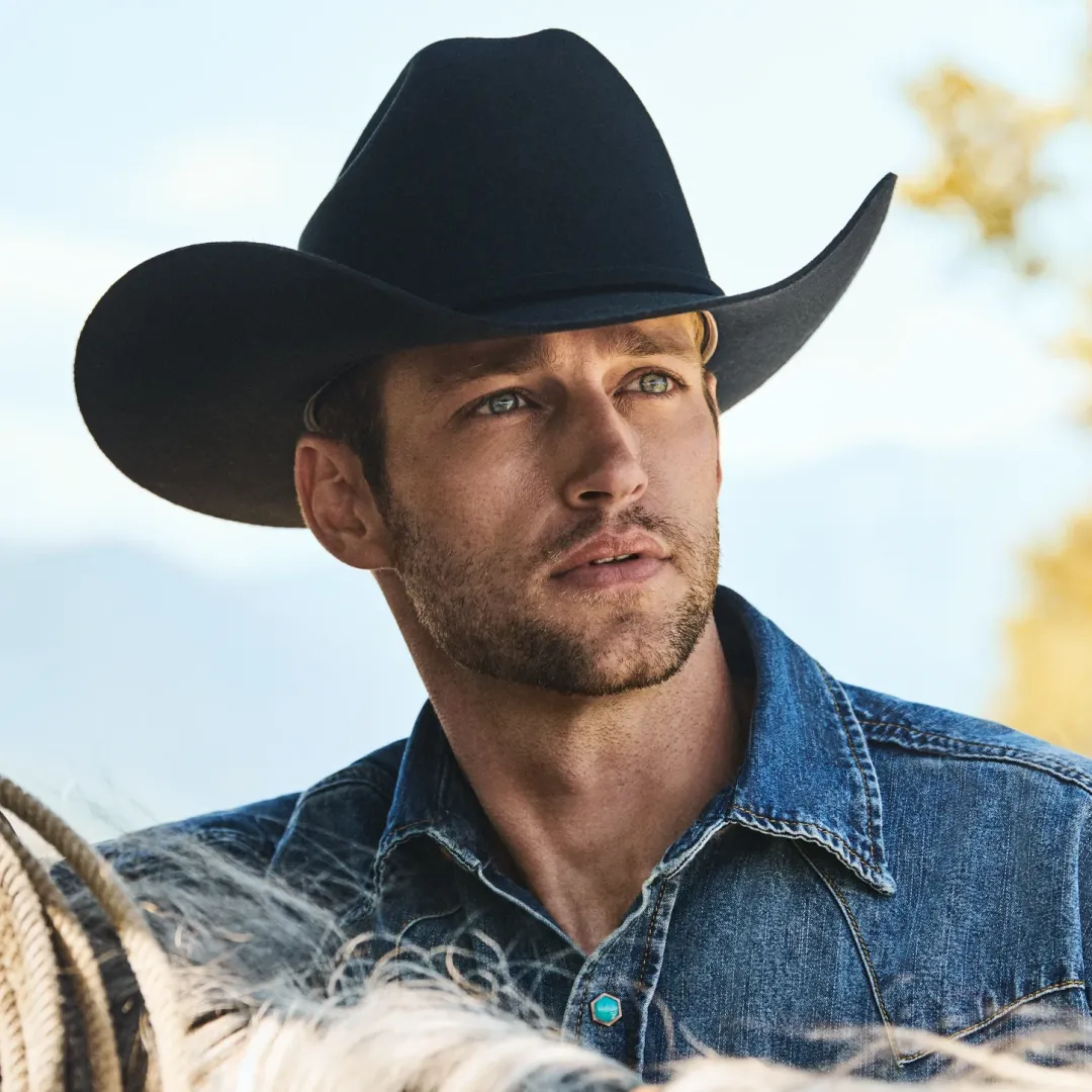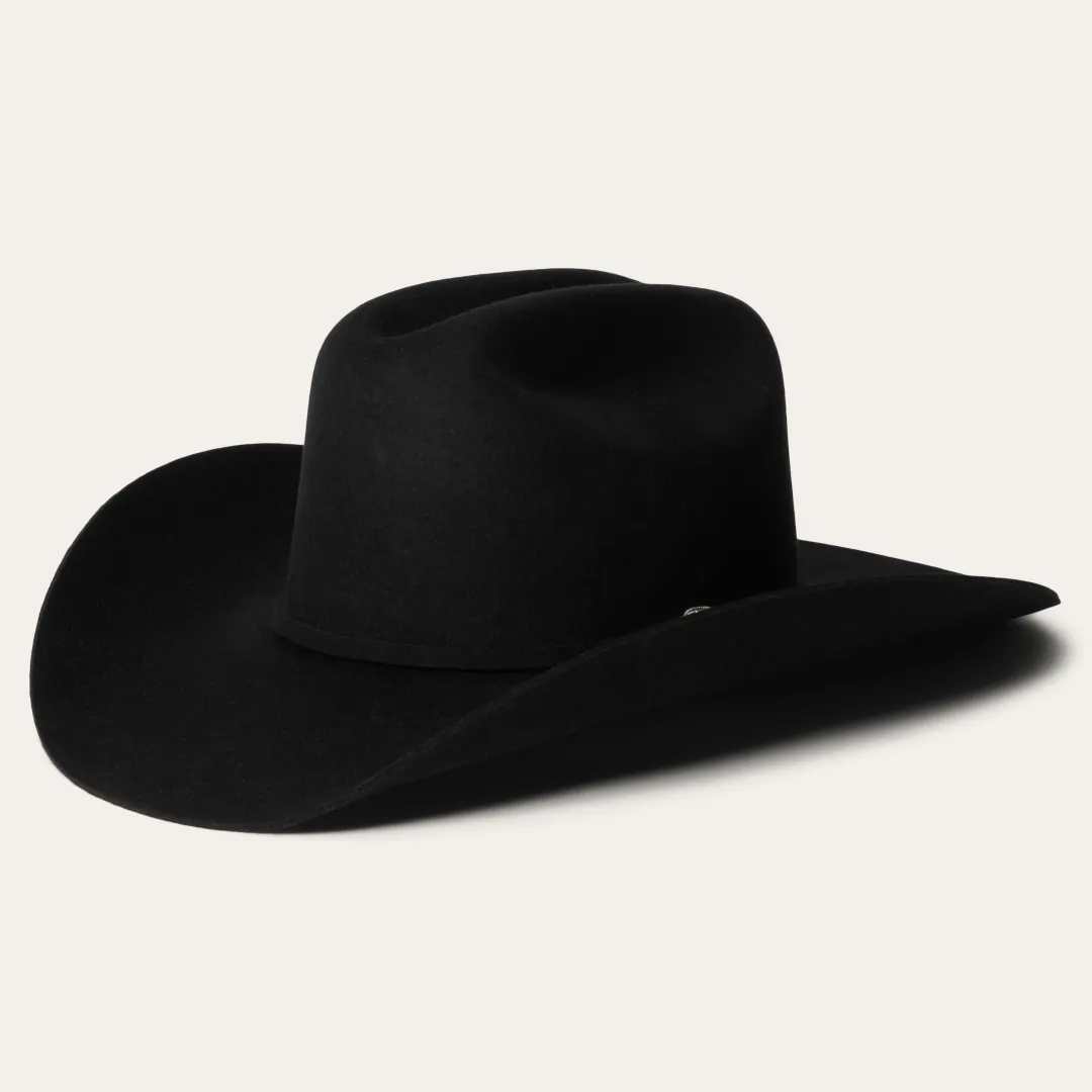 Part of our Buffalo collection, this cowboy hat is made in the USA of high-quality, weather-resistant 4X buffalo felt. Its classic Western profile features a classic cattleman crease, a 4″ brim and a 4 1/2” regular oval crown. Additional details include a leather sweatband, satin lining, and a self-matching hat band with a three-piece silver-toned buckle set, as well as a Stetson hat box.