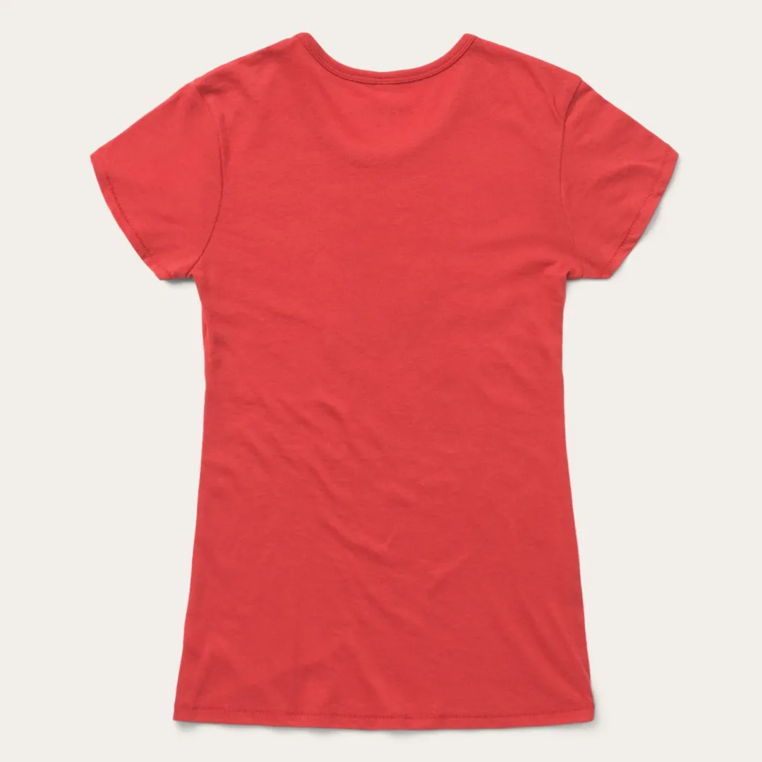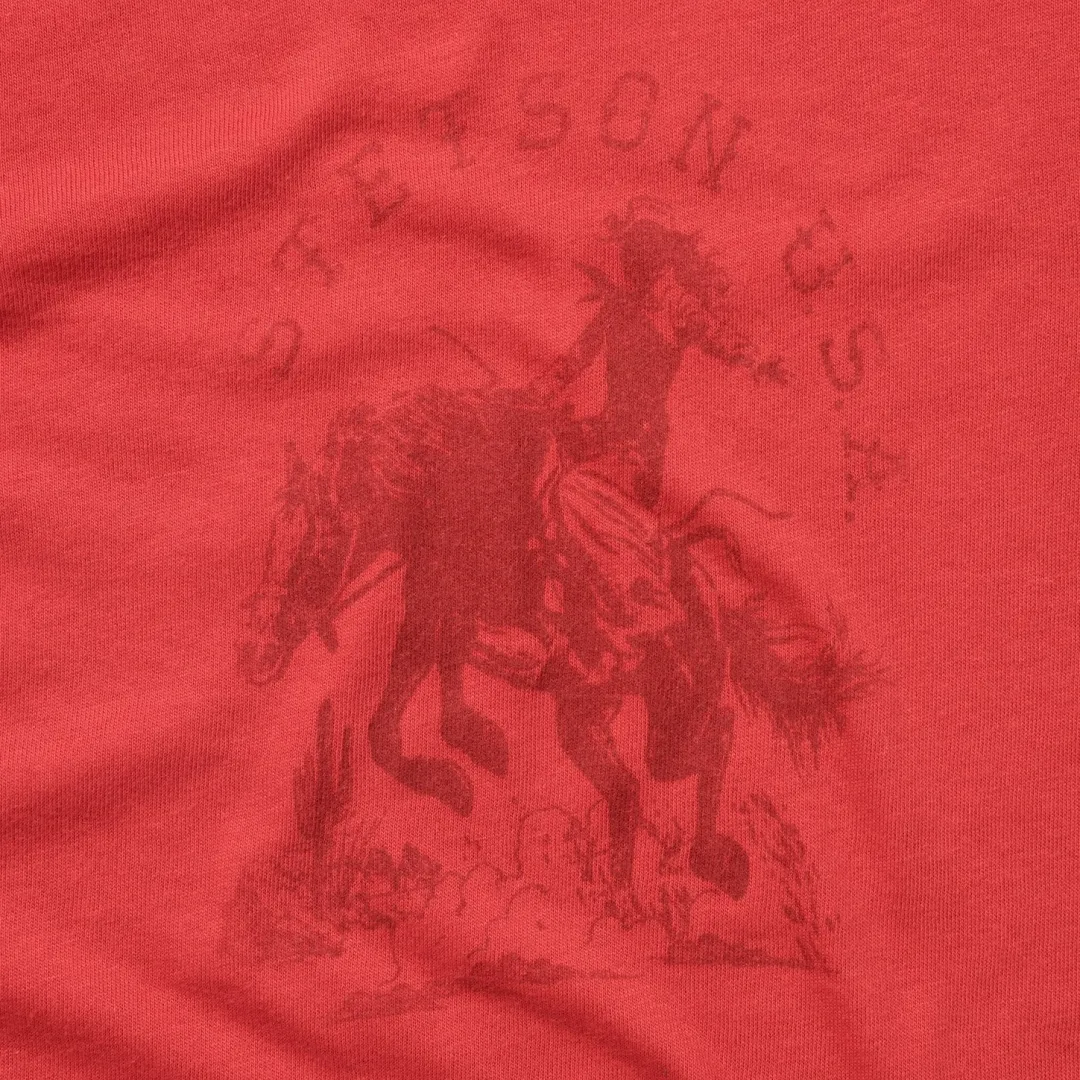 Nothing says good times like the relaxed feel of a graphic tee. Designed for maximum comfort without sacrificing an ounce of style, our t-shirts are made from airy cotton and screen-printed with custom signature graphics. This Western Stetson tee has been gently distressed, providing the perfect worn-in look for the spirited cowgirl. Go casual with a pair of jeans and boots, or dress things up with a skirt and sandals — however you decide to wear it, this shirt will see you through your day and then some. Extra soft and cut with the perfect slim fit, it’s an instant classic.