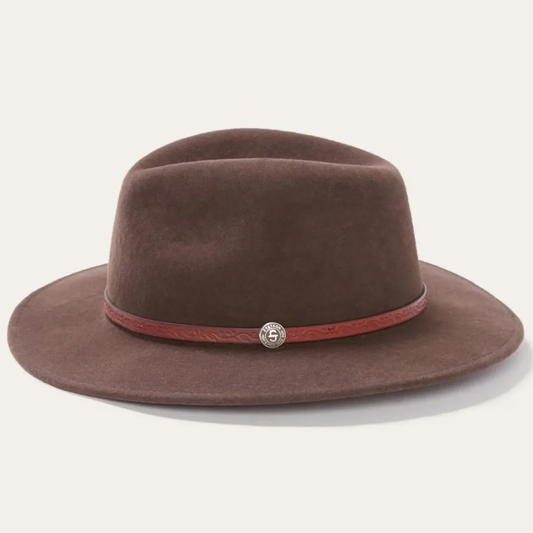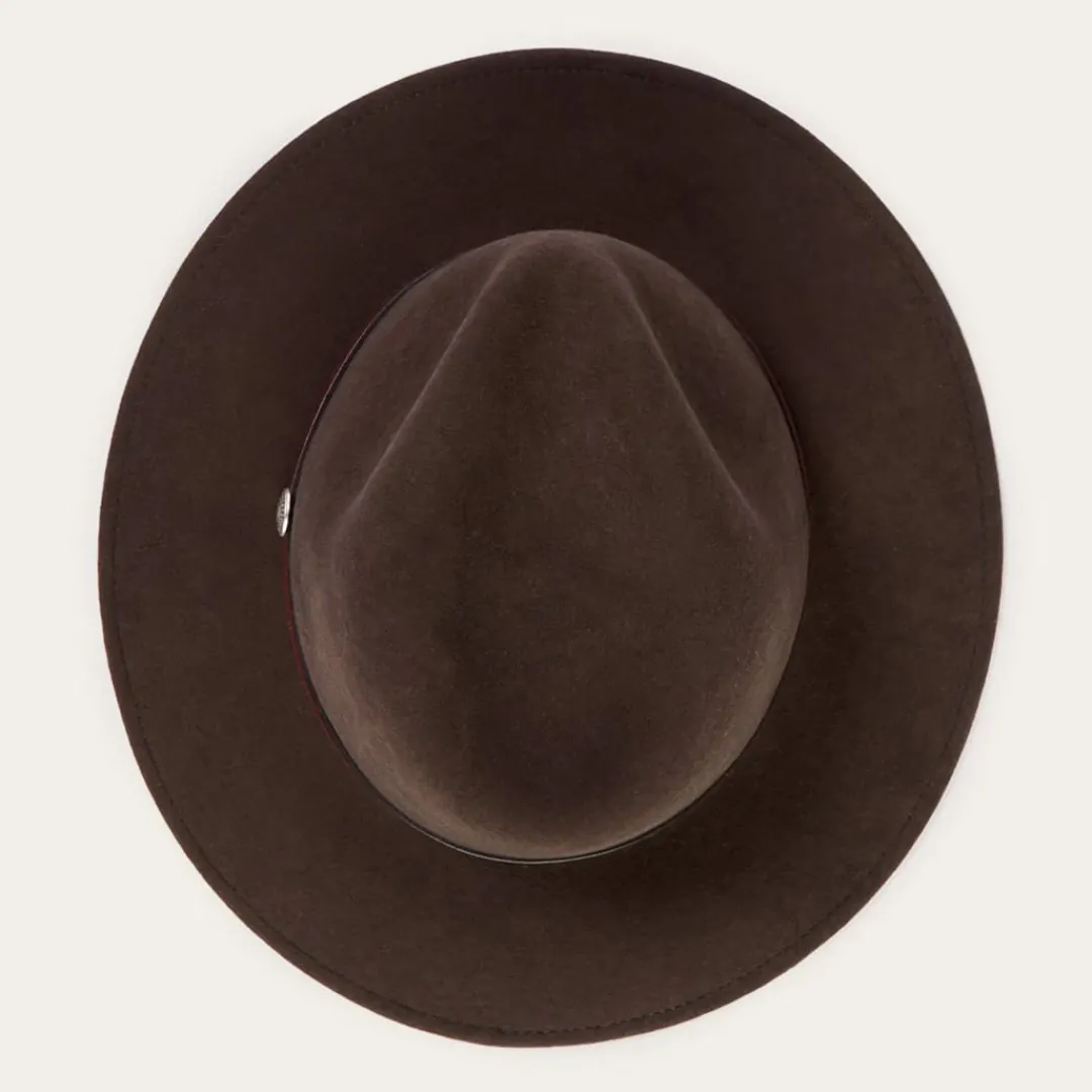 The Cromwell Outdoor Hat is constructed of crushable wool felt and features a center dent crown, interior dri-lex sweatband and leather hat band.