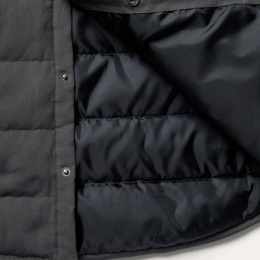 Lightweight and always ready when the weather goes south. Filled with down – nature’s insulation – so it has a high warmth to weight ratio and packs easily into a small space, so you’re always prepared. This no-nonsense layer has a side seam pockets and boasts antique nickel snaps.