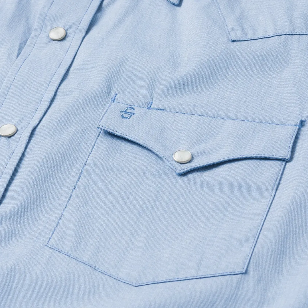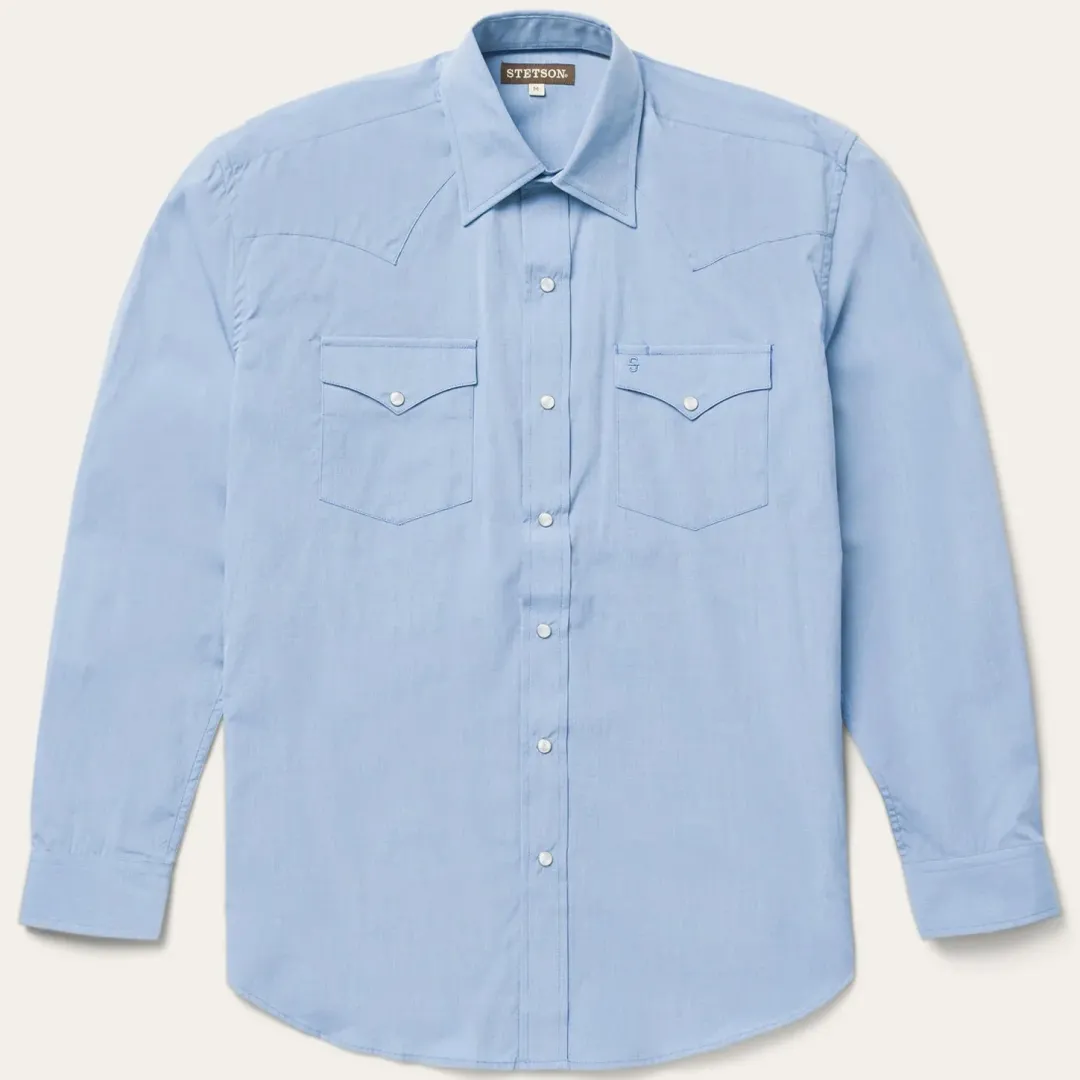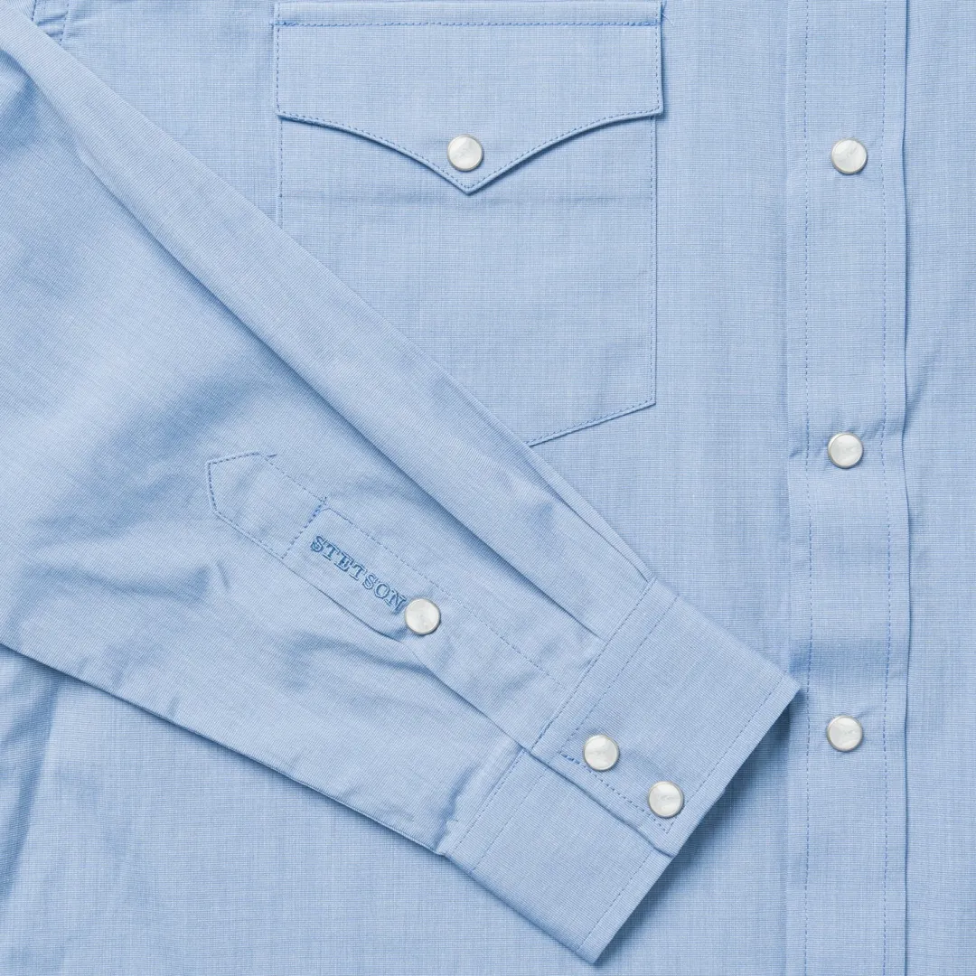 A tried-and-true Western classic in a fitted, modern cut — this is the kind of resilient and dependable shirt you’ll reach for every morning. It’s made from soft, lightweight, and tough cotton that hangs well while keeping its shape and only gets better with age. Two snap-closure pockets, a spread collar, and a one-point ultra-deep back yoke give this button-down the perfect dose of character.Iconic Western details include Stetson-branded snap buttons on the front placket, cuffs, and pockets, as well as custom embroidery on the chest and right cuff. Exceedingly durable and always comfortable, it’s an all-occasion essential.