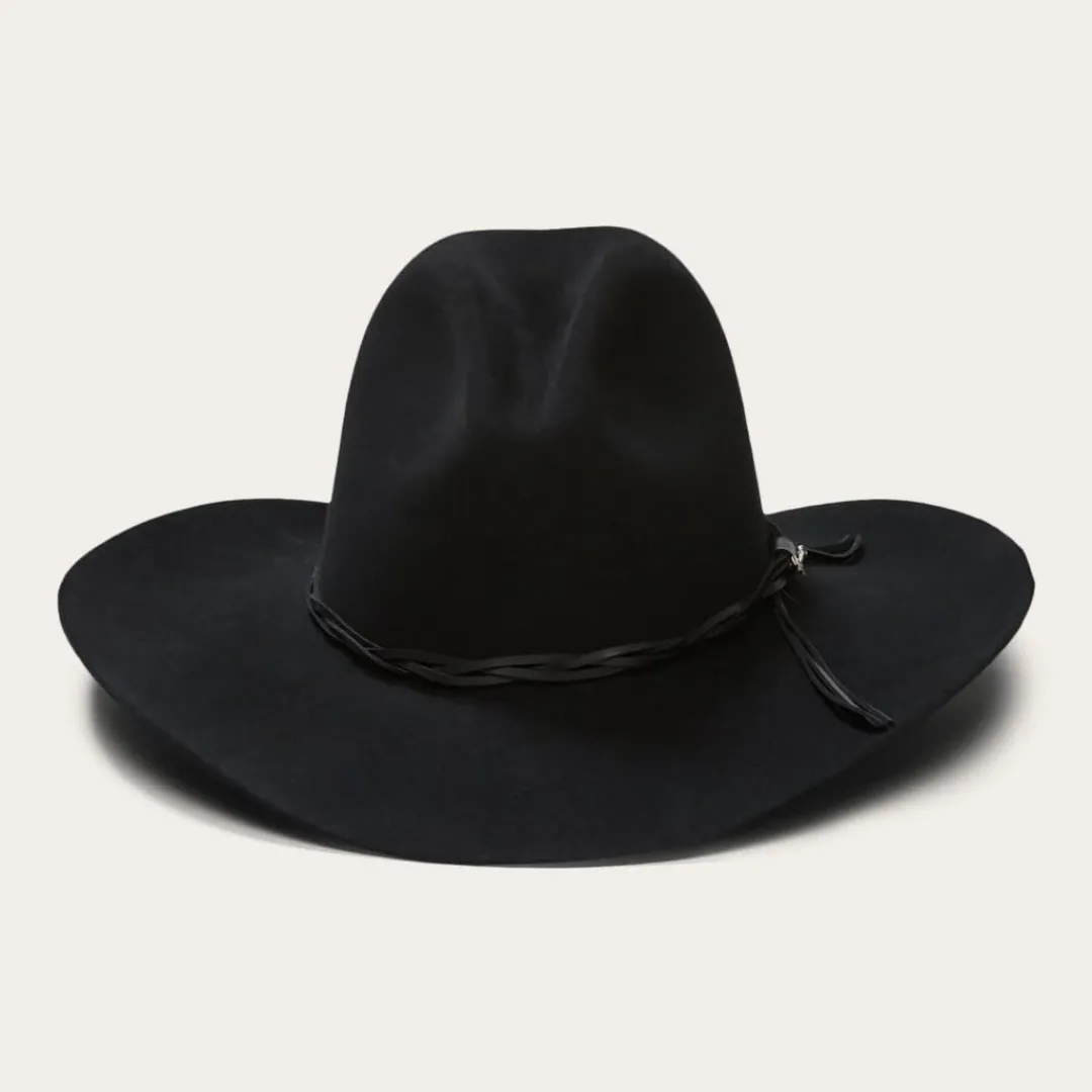 The Gus 6X Cowboy Hat is constructed of 6X quality fur felt and features a sloped crease crown, interior leather sweatband and is finished with a twisted leather hat band.