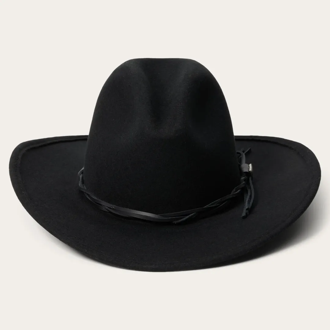 The Gus Crushable Outdoor Hat is constructed of crushable wool felt and features a Gus crown shape and twisted leather hat band. Wool Felt.