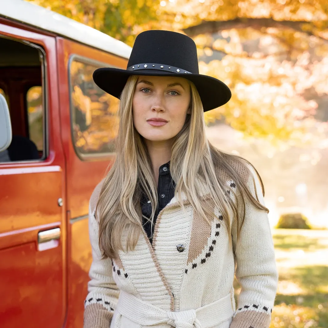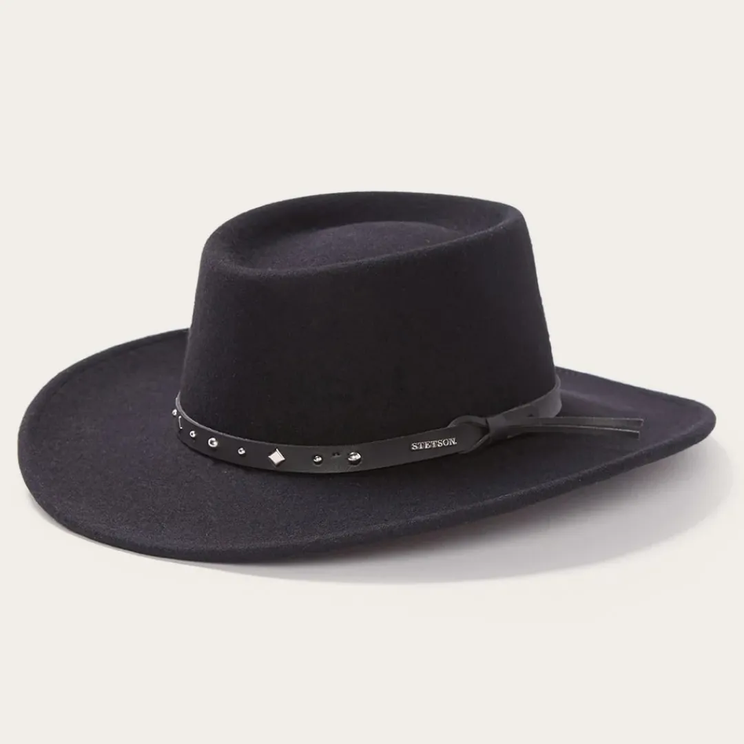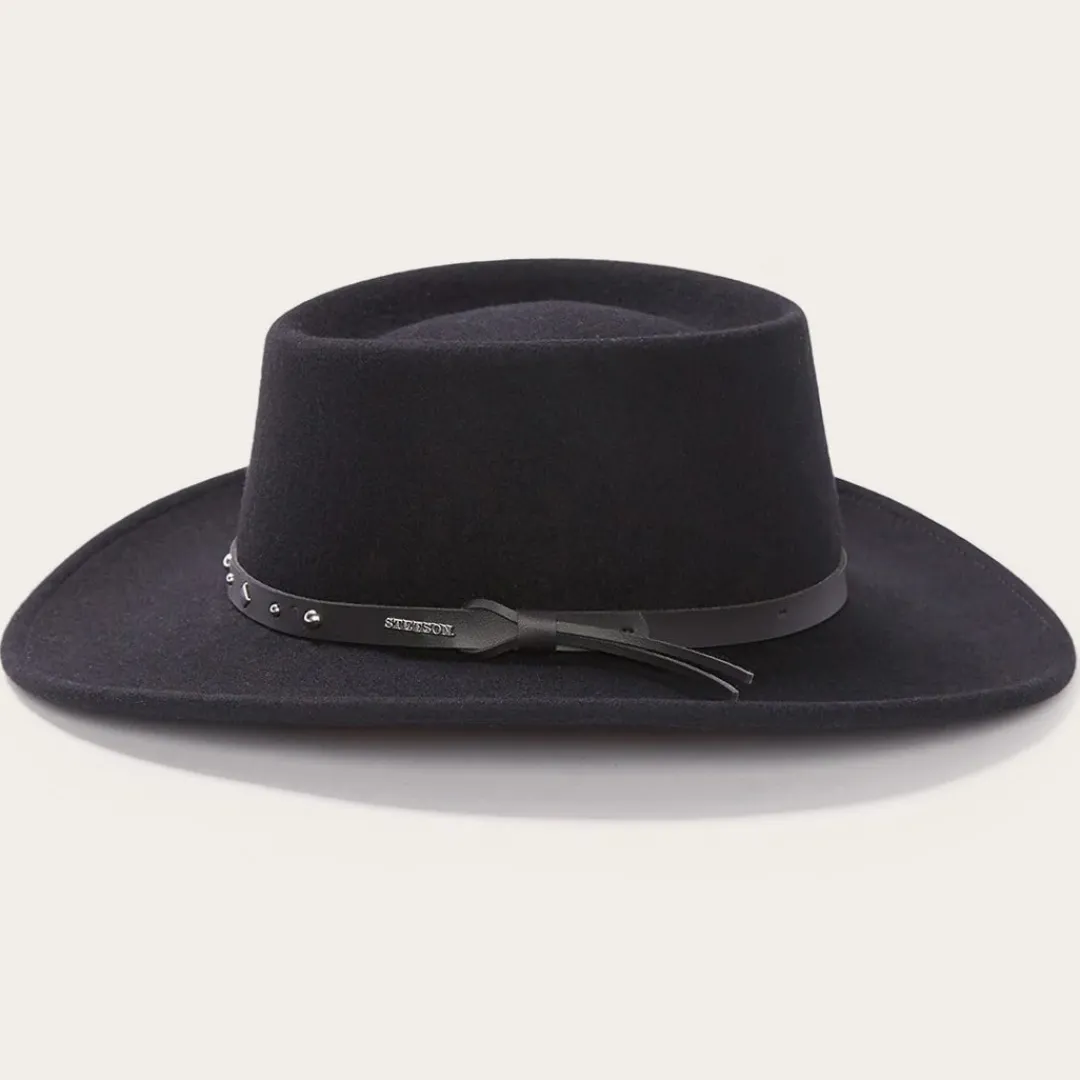 The Black Hawk Outdoor Hat is constructed of crushable wool and features an interior dri-lex sweatband and studded leather hat band. Wool. Made in USA.